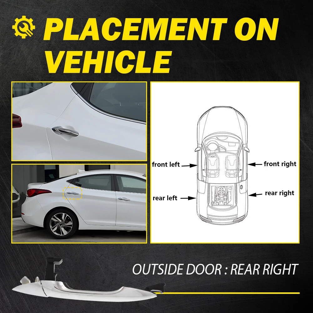 Fit for: 2011-2016 Hyundai Elantra Specifications OE Number: 836623X020-PFM Product Material: ABS Color: Chrome (as pictures show) Placement on Vehicle: Right left of outside door Features: *Perfect Fitment Comply with the industrial standards, use it with confidence. *Strict Quality Control All of our handles undergo strict quality control not just before shipping but throughout the production process. *Durable Material Mainly made of high-quality material to ensure the long service life and durability. *Simple Installation Easy installation with direct replacement, other modifications are not required. Exterior Door Handle For 2011-14 Hyundai Elantra RH Sedan Rear Chrome Plastic Fit for: 2011-2016 Hyundai Elantra Specifications OE Number: 836623X020-PFM Product Material: ABS Color: Chrome (as pictures show) Placement on Vehicle: Right left of outside door Features: *Perfect Fitment Comply with the industrial standards, use it with confidence. *Strict Quality Control All of our handles undergo strict quality control not just before shipping but throughout the production process. *Durable Material Mainly made of high-quality material to ensure the long service life and durability. *Simple Installation Easy installation with direct replacement, other modifications are not required. *Warm Notice Please double-check the part number and models in the description to guarantee it fits your vehicle before ordering. Packaging Include: Door handle*1 Item Specifics Universal Fitment : No Brand : AUXITO Features : Without Key Hole Finish : Chrome Fitment Type : Direct Replacement Interchange Part Number : 836623X020-PFM Manufacturer Part Number : 14908057 Manufacturer Warranty : 1 Year OE Number : 836623X020-PFM OE/OEM Part Number : 836623X020-PFM Other Part Number : 836623X020-PFM Part Name : Exterior Door Handle Performance Part : No Placement on Vehicle : Right, Rear Superseded Part Number : 836623X020-PFM Type : Exterior Door Handle Color : Chrome (as pictures show) Material : ABS Payment (1) Instant PayPal payment is the preferred method of payment. (2) We also accept payment via PayPal, DebitCard, Visa, MasterCard, Discover. (3) We will only ship to the confirmed PayPal shipping address given with the payment. (4) If you want to ship to other address, please change your PayPal shipping address before you make payment. (5) To avoid initiating an unpaid item claim, please pay within 7 days. Shipping (1) We will ship your item(s) within 24 hours. (2) We ship this item to US usually via USPS first class mail. It usually takes 3-6 working days to deliver. Returns (1) We offer free return & money back guarantee. If you are not satisfied with your purchase for any reasons, you can return the item for refund or replacement/exchange. All returns must include the original packaging. (Please refer to our return policy for details.) (2) If you don't return goods within 60 days from date of purchase, your right to cancel will be revoked. Any items damaged because of incorrect installation will not be refunded. Please contact us for return or troubleshooting help prior to returning any products. (3) Unauthorized reselling of AUXITO products is strictly prohibited and we can't honor the warranty if purchasing from the unauthorized reseller. Contact Us [Our office hours are MONDAY - Saturday 9:00PM - 6:00PM PST, but we will response you once we get your message .There will be some delay on respons if you send message or E-Mail on Sundy.] (1).Negative feedback will not help resolve any problems you have, please contact us via eBay messages before leaving negative feedback, our customer service will make best effort to help you with the issues. (2).We maintain high standards of excellenceand strive for 100% customer satisfaction! Feedback is very important to us. We request that you contact us immediately BEFORE you give us neutral or negative feedback, so that we can satisfactorily address your concerns. FAQ Why swith to LED? LEDs not only give your vehicle a clean, modern look but, with proper use, will outlast any halogen bulb and HID bulb! Low energy draw, high lumen output, and instant on/off LED technology out shines stock bulbs in every way. Which bulbs are used in my vehicle? Check Sylvania automotive lamp replacemnt guide, you can select the year, make, and model of your vehicle, then select the application you want to replace or upgrade from stock. What does CAN Bus mean? CAN Bus means Controller Area Network Bus. This system monitors your vehicle and reports operating conditions. CAN Bus systems are commonly found in European vehicles such as BMW, Audi, Mercedes, Volkswagen, Porsche, and in many American vehicles. While most late model American vehicles have CAN Bus systems, it is always good to check with your vehicle dealer to see which system your vehicle has before purchasing electrical products. When do you need Warning Canceller? Some vehicles with cmplex internal computers(such as Audi,BMW,Jaguar,Mercedes,etc.) might report on-dash errors or flickering on the headlights. The warning canceller fixes the dashboard warning and flickering effect. Bulb Out Dashboard Error: On some vehicles, the dashboard will report as if you have a headlight bulb missing or burnt. It does not affect the headlights functioning, but the light on-dash will be on. The warning canceller fixes the issue. Flickering Issue: This happens when your vehicle does not recognize the new headlights installed. When turning the headlights on, the vehicle's computer does not understand the signal back from the headlights hence thinking they are still off. This triggers the headlight flickering effect. The warning canceller solves this issue. LED Advantages: Very low and efficient energy consumption than halogen bulbs & HID Bulbs Compared with HID bulbs, LED bulbs Light up instantly, no warm up period Low voltage protection, high precision constant current driver chip Longer lifespan than HID and halogen bulbs Light can be controll