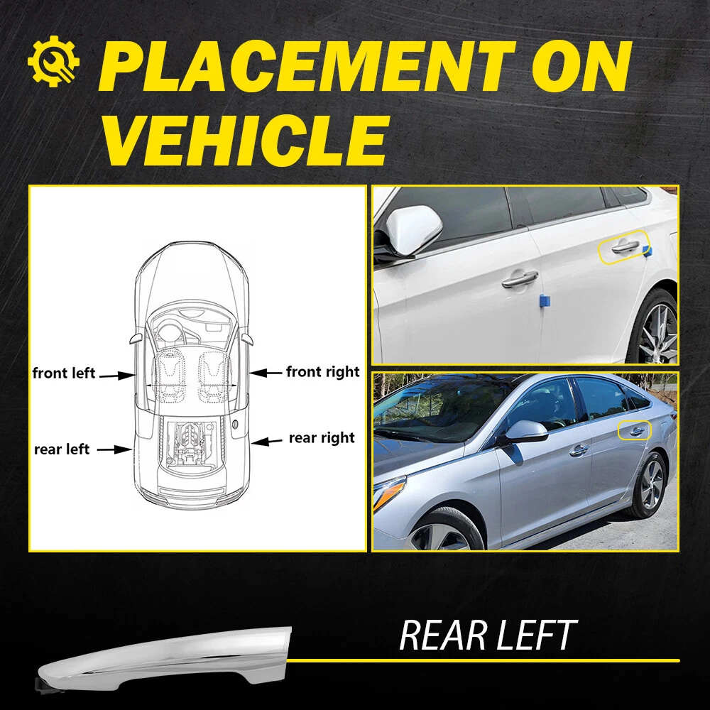 Fit for: Hyundai 2017-2019 Sonata Hybrid SE 2017, 2019 Sonata Hybrid Ultimate 2016-2017, 2019 Sonata Plug-In Hybrid Ultimate 2018-2019 Sonata SEL 2015-2017 Sonata (submodel: Hybrid, Ultimate 2.0T) 2015-2018 Sonata (submodel: GL, GLS, Sport 2.0T) 2015-2019 Sonata (submodel: Eco, Hybrid Limited, Limited, Limited 2.0T, SE, Sport) 2016-2017 Sonata (submodel: Base, Sport Tech) 2016-2019 Sonata (submodel: Plug-In Hybrid, Plug-In Hybrid Limited) 2018 Sonata (submodel: 2.0T Sport, 2.4 Sport, Hybrid GL, Hybrid GLS) 2019 Sonata (submodel: 2.0T Ultimate, Essential, Hybrid Luxury, Hybrid Preferred, Luxury, Preferred) Specifications Exterior Door Handles Chrome Rear Driver Left Side for Hyundai Sonata 2015-2018 Fit for: Hyundai 2017-2019 Sonata Hybrid SE 2017, 2019 Sonata Hybrid Ultimate 2016-2017, 2019 Sonata Plug-In Hybrid Ultimate 2018-2019 Sonata SEL 2015-2017 Sonata (submodel: Hybrid, Ultimate 2.0T) 2015-2018 Sonata (submodel: GL, GLS, Sport 2.0T) 2015-2019 Sonata (submodel: Eco, Hybrid Limited, Limited, Limited 2.0T, SE, Sport) 2016-2017 Sonata (submodel: Base, Sport Tech) 2016-2019 Sonata (submodel: Plug-In Hybrid, Plug-In Hybrid Limited) 2018 Sonata (submodel: 2.0T Sport, 2.4 Sport, Hybrid GL, Hybrid GLS) 2019 Sonata (submodel: 2.0T Ultimate, Essential, Hybrid Luxury, Hybrid Preferred, Luxury, Preferred) Specifications OE Number: 82651C1010, 83652C1010 Color: Chrome Placement on Vehicle: Rear left of outer door Features: *Perfect Fitment Comply with the industrial standards, use it with confidence. *Strict Quality Control All of our handles undergo strict quality control not just before shipping but throughout the production process. *Durable Material Mainly made of high-quality material to ensure the long service life and durability. *Simple Installation Easy installation with direct replacement, other modifications are not required. *Warm Notice Please double-check the part number and models in the description to guarantee it fits your vehicle before ordering. Packaging Include: Door handle*1 Item Specifics Fitment Type Direct Replacement Interchange Part Number 82651C1010, 83652C1010 Brand AUXITO Features Durable Finish Chrome Manufacturer Warranty 5 Years Notes With cover OE/OEM Part Number 82651C1010, 83652C1010 Other Part Number 82651C1010, 83652C1010 Part Name Exterior Door Handle Performance Part No Placement on Vehicle Left, Rear Superseded Part Number 82651C1010, 83652C1010 Type Exterior Door Handle Number of Pieces 1 Universal Fitment No Payment We accept PayPal via eBay Secure Check-Out only. Immediate payment needs to be processed for items with Add to Cart option so that any promotional discounts can be applied to your order immediately. Shipping 1 .We do everything we can to ship your orders out as soon as possible. 2. Shipping and Handling: We process orders within two business day after the payment was clear. Returns Our 30-day Satisfaction Guarantee assures our customers that they will receive all orders promptly and exactly as described. In addition, it allows customers to return new and unused products in their original factory condition for any reason within 30 days from the date of purchase. 1. All returns must be pre-approved by AUXITO and have a return merchandise authorization(RMA) number. Unauthorized returns will not be accepted. 2. Buyers are responsible for appropriate packing, returning shipping cost, insurance and returning the item in "new" condition. Used items will not be accepted for return. 3. We will replace the returning item with an identical item, issue a full store credit or a full refund. Contact Us Our Working Time:(GMT+8)Monday to Friday,9:00-18:00. For inquires and customer support, please send your email via ebay email system. All emails will be responded to within 24 hours during business days. Feedbacks 1. We appreciate your business and strived to improve our customer service and our commitment to quality. 2. We will leave a positive feedback immediately after payment is received. We appreciate a positive feedback as much as you do. 3. If for some reason there is any issue with the purchase, please contact us prior to leaving feedback, and we will be glad to work with you to have it resolved. DESCRIPTION PAYMENT SHIPPING RETURN POLICY CONTACT US Hot Item 190 PCS Bumper Fender Moulding Side Garnish Grille Retainer Clip ABS Various USD 10.99 AUXITO 7440/7443 Turn LED Signal Light Bulbs Anti Hyper Flash Amber Super Bright USD 21.84 Waterproof Motorcycle Handlebar Dual USB Phone Charger Cigarette Lighter Socket USD 13.29 Fit For 2015-2019 Hyundai Center Light Gray Sonata Armrest Console Lid Cover USD 13.29 4" Red Truck Long Performance High Flow Cold Air Intake Cone Dry Filter Cotton USD 27.54 Hot Item Fit For 2015-2019 Hyundai Center Light Gray Sonata Armrest Console Lid Cover USD 13.29 190 PCS Bumper Fender Moulding Side Garnish Grille Retainer Clip ABS Various USD 10.99 Waterproof Motorcycle Handlebar Dual USB Phone Charger Cigarette Lighter Socket USD 13.29 AUXITO 7440/7443 Turn LED Signal Light Bulbs Anti Hyper Flash Amber Super Bright USD 21.84 4" Red Truck Long Performance High Flow Cold Air Intake Cone Dry Filter Cotton USD 27.54 Exterior Door Handles Chrome Rear Driver Left Side for Hyundai Sonata 2015-2018 Fit for: Hyundai 2017-2019 Sonata Hybrid SE 2017, 2019 Sonata Hybrid Ultimate 2016-2017, 2019 Sonata Plug-In Hybrid Ultimate 2018-2019 Sonata SEL 2015-2017 Sonata (submodel: Hybrid, Ultimate 2.0T) 2015-2018 Sonata (submodel: GL, GLS, Sport 2.0T) 2015-2019 Sonata (submodel: Eco, Hybrid Limited, Limited, Limited 2.0T, SE, Sport) 2016-2017 Sonata (submodel: Base, Sport Tech) 2016-2019 Sonata (submodel: Plug-In Hybrid, Plug-In Hybrid Limited) 2018 Sonata (submodel: 2.0T Sport, 2.4 Sport, Hybrid GL, Hybrid GLS) 2019 Sonata (submodel: 2.0T Ultimate, Essential, Hybrid Luxury, Hybrid Preferred, Luxury, Preferred) Specifications OE Number: 82651C1010, 83652C1010 Color: Chrome Placement on Vehicle: Rear left of outer door Features: *Perfect Fitme