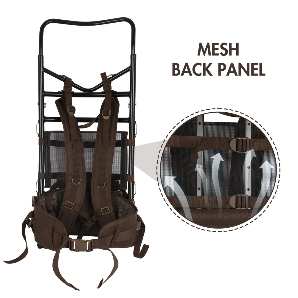 Lasting and Reliable: Crafted with a premium aluminum frame, the external frame backpack ensures long-lasting durability and reliable performance. This sturdy backpack frame provides excellent support and stability, making it perfect for hunting, hiking, and backpacking adventures Ergonomic Design:This hunting backpack features a mesh back panel that allows for enhanced breathability and ventilation during long hours of wear. The extra thick padded shoulder straps and waist belt offer optimal comfort and weight distribution, reducing fatigue and strain on your body Ample Storage Space: With dimensions of 14.96"L x 14.17"W x 29.92"H, our frame backpack provides ample space to store all your essentials for your outdoor activities. Whether you need to carry hunting gear, hiking equipment, or camping supplies, this pack frame has enough room to accommodate everything you need Versatile and Adjustable: The external frame design of our backpack allows for easy attachment and customization. You can easily attach additional pockets, or accessories to the frame, providing you with endless possibilities for organization. The adjustable shoulder straps ensure a comfortable fit for users of different heights Reliable: We stand behind the quality of our product. Your satisfaction is our top priority, and we are committed to delivering a external frame hiking backpacks that meet your needs in the great outdoors