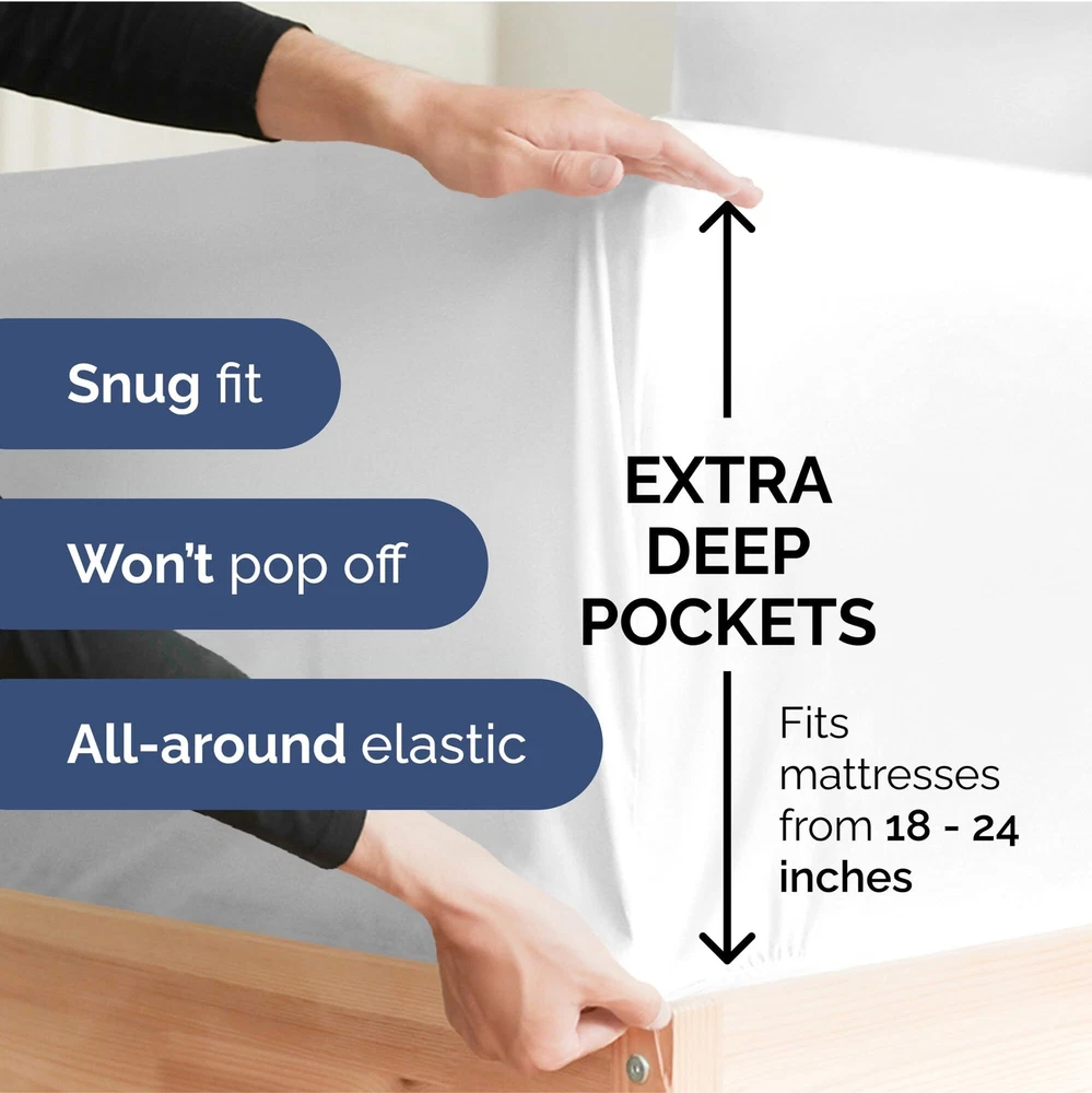 Extra Deep Queen Fitted Sheet - Hotel Luxury Single Fitted Sheet Only - Easily Fits 18 inch to 24 inch Mattress - Ultra Soft, Wrinkle Free w/Extra Deep Pockets - Easy-Care, Breathable & Comfy - White Color: 01 - WhiteFeatures: OTHER WHITE QUEEN SHEETS OFTEN PULL LOOSE FROM THE MATTRESS while you’re sleeping and are a struggle to get on your bed, even when you buy the right size. At CGK Unlimited, we’ve designed our white queen bed sheets with extra deep pockets to easily fit mattresses 18”–24” deep, so it’s a cinch to put on the bed – even with a mattress topper! our deep fitted white sheets queen also feature elastic all the way around its edges to hug your mattress securely – no more balled up sheets! UNLIKE CHEAP WHITE QUEEN SIZE SHEETS THAT ARE SO THIN you can see right through them, our fitted sheet queen is made of premium quality, double brushed fabric that’s designed to last. Our machine-washable white queen fitted sheets deep pocket are specially treated to resist tearing, shrinking, wrinkling, staining and fading – so you can wash without any worry. MANY FITTED WHITE QUEEN SHEET BRANDS TOUT THE SOFTNESS of their bedsheets, only to feel rough and starchy against the skin. At CGK Unlimited, we hand-select our super soft deep pocket fitted sheet to ensure premium quality and downy softness that will only grow softer and feel more luxurious with every wash. SINK INTO SILKY SOFT LUXURY. Not only is our deep pocket queen fitted sheet only designed for a relaxing, restorative night’s rest, you can sleep soundly knowing your white queen sheet wasn’t treated with harsh, harmful chemicals that leave a strong odor, our queen bedding made with premium -friendly dye, so you can count on them to last and last. GIVE YOURSELF THE GIFT OF 5-STAR LUXURY – WITHOUT THE 5-STAR PRICE TAG! At CGK Unlimited, we’re dedicated to providing our customers with the kind of premium, ultra-soft bedsheet that will lull you into deep, luxurious sleep, at an affordable price. We work hard to uphold our high standards, to keep you happy and well-rested. Package Dimensions: 12.4 x 9.8 x 3.0 inches Extra Deep Queen Fitted Sheet - Hotel Luxury Single Fitted Sheet Only - Easily Fits 18 inch to 24 inch Mattress - Ultra Soft, Wrinkle Free w/Extra Deep Pockets - Easy-Care, Breathable & Comfy - White Color: 01 - White Features: OTHER WHITE QUEEN SHEETS OFTEN PULL LOOSE FROM THE MATTRESS while you’re sleeping and are a struggle to get on your bed, even when you buy the right size. At CGK Unlimited, we’ve designed our white queen bed sheets with extra deep pockets to easily fit mattresses 18”–24” deep, so it’s a cinch to put on the bed – even with a mattress topper! our deep fitted white sheets queen also feature elastic all the way around its edges to hug your mattress securely – no more balled up sheets! UNLIKE CHEAP WHITE QUEEN SIZE SHEETS THAT ARE SO THIN you can see right through them, our fitted sheet queen is made of premium quality, double brushed fabric that’s designed to last. Our machine-washable white queen fitted sheets deep pocket are specially treated to resist tearing, shrinking, wrinkling, staining and fading – so you can wash without any worry. MANY FITTED WHITE QUEEN SHEET BRANDS TOUT THE SOFTNESS of their bedsheets, only to feel rough and starchy against the skin. At CGK Unlimited, we hand-select our super soft deep pocket fitted sheet to ensure premium quality and downy softness that will only grow softer and feel more luxurious with every wash. SINK INTO SILKY SOFT LUXURY. Not only is our deep pocket queen fitted sheet only designed for a relaxing, restorative night’s rest, you can sleep soundly knowing your white queen sheet wasn’t treated with harsh, harmful chemicals that leave a strong odor, our queen bedding made with premium -friendly dye, so you can count on them to last and last. GIVE YOURSELF THE GIFT OF 5-STAR LUXURY – WITHOUT THE 5-STAR PRICE TAG! At CGK Unlimited, we’re dedicated to providing our customers with the kind of premium, ultra-soft bedsheet that will lull you into deep, luxurious sleep, at an affordable price. We work hard to uphold our high standards, to keep you happy and well-rested. Package Dimensions: 12.4 x 9.8 x 3.0 inches × × × × × × × × × × Buy now and save! Tell a friend Watch now Postage info Click the Postage tab above the listing description for more info Click the Postage tab above the listing description for more info! Additional delivery notes PICK UP OPTION Sorry, our items are NOT available for pick-up. PAYING VIA PAYPAL We accept PayPal on our all our items so you can shop with confidence. Simple choose the PayPal option when proceeding through the checkout. Additional Information No additional information at this time Ask seller a question You might also like ELEFOCUS Hidden Cameras,WiFi Wireless Camera,Nanny Cam,Spy Camera,Mini Camera,Sm Mini Body Camera Video Recorder, 1080P Small Portable Wearable Hidden Cameras wi Vancle 4 Pack Bands for Fitbit Inspire 2 Bands/Fitbit Inspire HR for Women Men, 2 Pack-Earbuds for iPhone Headphones Wired with Earphones [MFi Certified](Built- Contact To contact our Customer Service Team, simply click the button here and our Customer Service team will be happy to assist. Ask seller a question © My Store Postage Click the Postage tab above the listing description for more info Payment Accepted Payment Methods PayPal Returns Returns are accepted Items must be returned within 30 days of the auction ending Buyer will pay for return shipping. eBay integration by