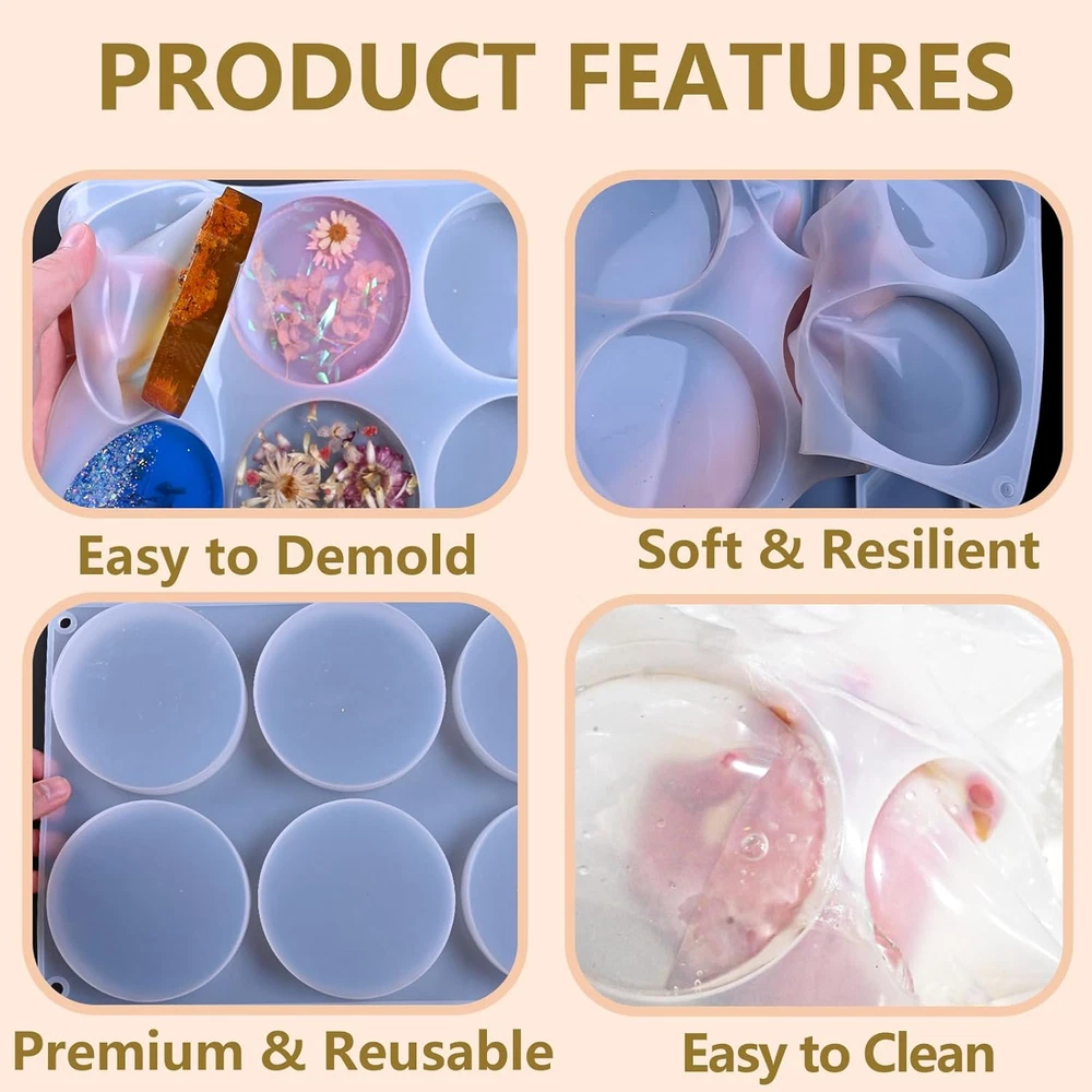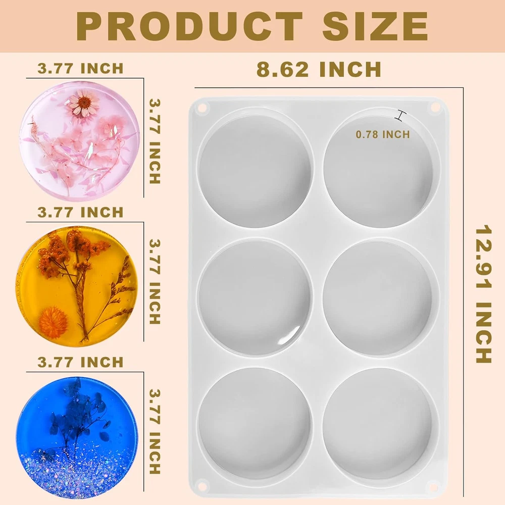【Versatility Resin Molds】: The deep round silicone molds for many projects epoxy resin coasters, wine cups mat, coffee discs, write paperweight, sculpture bases, resin candle holders, trinkets trays, flower bouquets preservation, art craft home decor display, coaster epoxy molds silicone are compatible with many casting materials, especially good for epoxy resin, casting resin, not for coating resin 【Large 6 Cavity Coaster Molds】: ZQYSING resin coasters molds have a diameter 3.8 inch with depth 0.78 inch, It's very sturdy and bigger; It's thick enough to create a small scene, DIY many resin art craft 【Premium Quality Silicone】: They are round coaster molds had a shine and not matte, coaster molds the rim it forms is a plus, the finished products have a glossy and smooth surface without polishing, easy to clean, easy to use & de-molds, reusable & durable 【Ideal Gift】: You'll like the depth of these 4 inch resin coaster molds, they allow for adding multiple layers easily. But you can do thinner ones if you don't want it to be very thick. It's a ideal gift choice to send to your friends family as Graduation seasons, Teacher gifts, Valentine's Day, Mothers' Day, Fathers' Day, Birthday gifts, Thanksgiving, Christmas and other special occasions 【After Sale Service】: Please purchase with confidence. Simply add to your cart now! If you have any questions or suggestions about ZQYSING's moulds, please contact us in time, and we will try our best to solve the problem at the very first time Product Description