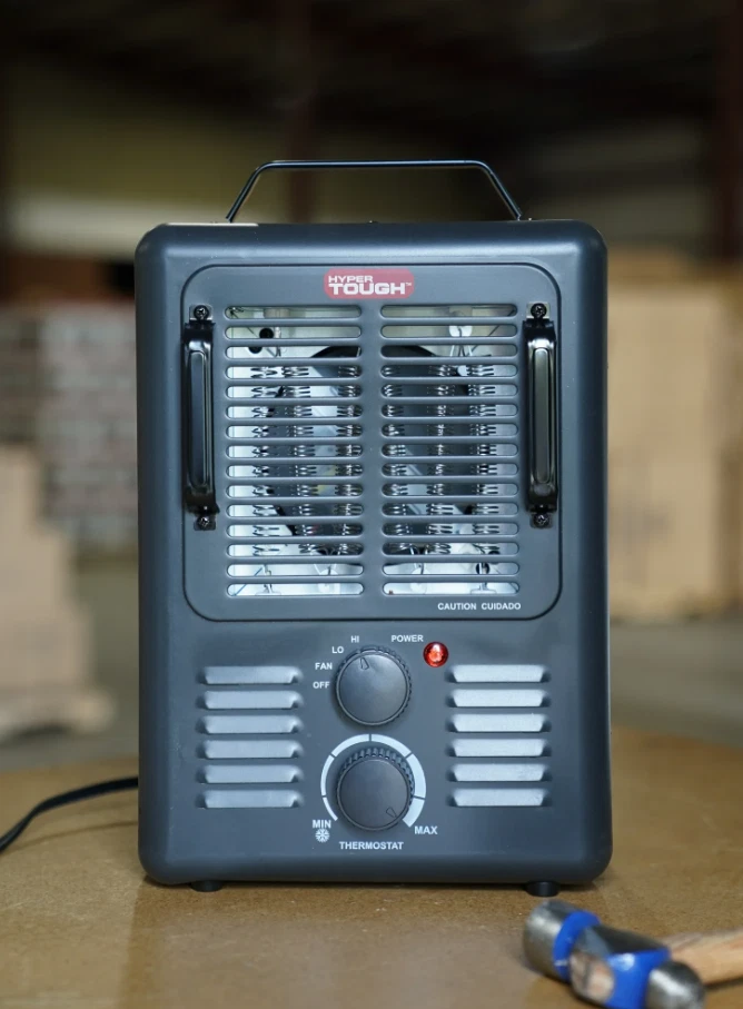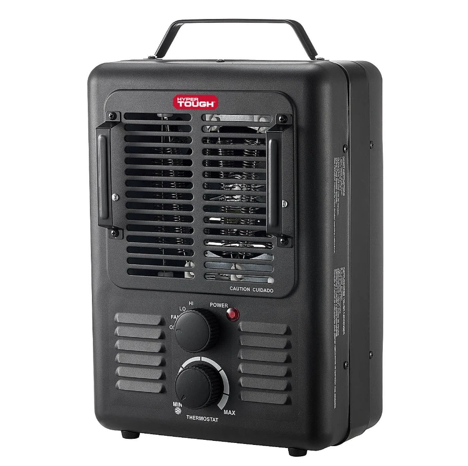 The New 1500W Milkhouse Utility Heater is the perfect investment for those seeking a reliable and efficient heating solution. This heater is capable of quickly and effectively heating areas up to 160 sq ft. Equipped with an adjustable thermostat and 2 heat settings, users have full control over the temperature to ensure maximum comfort. It is easily portable thanks to the carry handle and compact size, measuring 10.24" x 6.89" x 15.91". The durable metal construction aids in longevity. The built-in safety features such as overheat protection and tip-over switch-off function provide peace of mind when using this heater. Whether you need supplemental heating in your home, garage, or workshop, the New 1500W Milkhouse Utility Heater offers exceptional performance at an affordable price point. Metal construction for extra durability Adjustable thermostat allows for easy temperature control Air forced by a fan Large handle for easy carrying Light indicates when heater is on Product size: 10.24 in x 6.89 in x 15.91 in Heater remains cool to the touch No assembly required Protective features in place to prevent overheating 2 heat settings Equipped with a tip-over switch off function for safety Recommended for indoor use