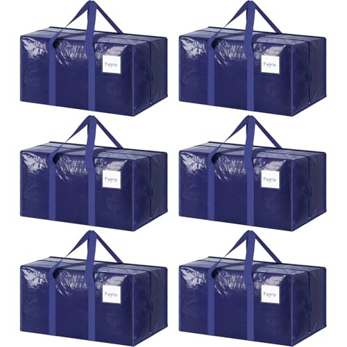 Return Policy Fast Delivery Trusted seller 6 Pack Extra Heavy Duty Large Moving Bags with Strong Zipper & Comfortable Handles, Sturdy & Durable Clothes Storage Bags Totes Bins, Blue Packing Moving Boxes for College Supplies, Dark Blue Product Description PE No Fur 【Extra Heavy Duty】Made of upgraded 180 GMS extra thick coated PE fabric, Fygrip moving bags with fully wrap around handles, strong zipper and reinforced stitching promise to safely hold more than 65 lbs loading. 【Extra Large Capacity】Sized at 29"L x 14"W x 13"H, these extra large storage bags offers more than 23 gallon volume, perfect packing bags for the moving of college student. 【Easy Packing & Storage】No more hassles to assemble and unpack the moving boxes. These large packing bags features a wide open zipper design, you can easily pack your large bedding right into the bags. And you can also easily folded them after use for easy storage. 【Fygrip Comfortable Grip】Equipped with wide webbing handles, it can relieve the burden while carrying by hand or on the shoulder, bringing you a more comfortable using experience.Perfect storage bags storage bins storage totes cubes containers for closet organizers and storage. 【No Puncture & Waterproof】These sturdy packing bags are puncture-free and waterproof, they can easily withstand the rough journey of moving, camping, travel, closet organization and storage. Shipping Returns Payment Shipping Shipping is FREE to all addresses other than APO/PO boxes in the lower 48 states. All our stock ships from US-based warehouses. Shipped via USPS or UPS (depending on location and package weight) Unless stated otherwise, all orders will ship within 24-72 hours of your payment being processed. Check our feedback to see the great reviews of FAST shipping we offer. Returns Seller does not accept returns Payment We currently accept payment via eBay managed payments only. Once payment is cleared, we will dispatch your shipment within 1-3 business days. Please refer to the "Shipping" tab for more information regarding shipping speed to your destination.