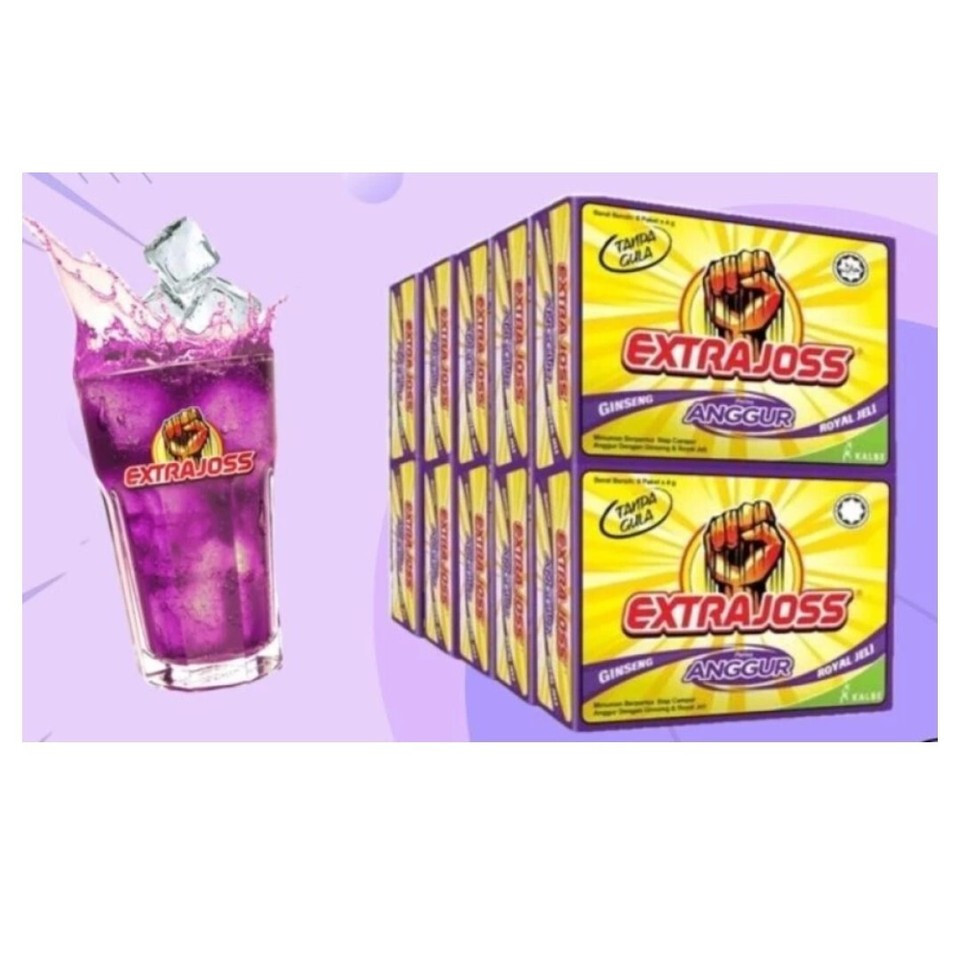 EXTRA JOSS 50 BOX (300 Sachets) Grape Flavour Sugar Free Energy Drink Powder.