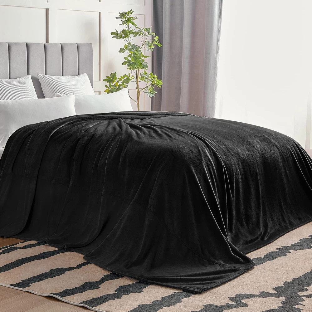 UNDENIABLE EXTRA LARGE BLANKET:The size of oversized blanket reaches 120x120 inches, which nearly doubles the size of a standard king-size blanket or comforter. Giant blankets could enfold the whole family, which provides more cozy and warmth while helping the heart grow fonder. DOUBLE-SIDE FLUFFY FLEECE BLANKET: The flannel fleece fabric we choose is originally made from 100% polyester and brushed to create super softness on both sides, the huge blanket is designed to be solid but elegant. VERSATILE USAGES: Soft and warm big blankets are suitable everywhere and anytime. No matter as a couch blanket for watching TV or a bed blanket for having a nap, these fleece blankets can provide perfect comfortable and a sense of security while being hugged. Meanwhile, these blankets are also nice companions for a picnic and camping. SOFT BLANKET WHILE ALSO ELEGANT DECOR: With the plush thickness, these fleece throw blankets can give you extreme warmth and comfort all year round. The fabulous color revives this blanket with an elegant appearance to complement your room with a chic feeling- Protect your luxury bed and couch from dirt and stain to keep them fresh and clean. EASY CARE: Durable fleece fabric helps the large blanket easy to care for while even with a bigger size or weight. Suitable for machine washing and keep soft and warm even after washing.No shrinkage, No color fading, and No unraveling after washing.