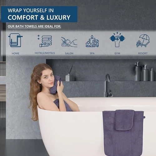 Return Policy Fast Delivery Trusted seller Extra Large Bath Sheet Set of 4,Ultra Soft Fluffy Towel,35”x 70”Oversized Bath Towel Set,Premium Microfiber Bathroom Towel Set Highly Absorbent Quick Dry Shower Towel for Bathroom,Hotel,Spa (Purple) Product Description JUMBO OVERSIZED BATH SHEET:4 Piece Extra Large Bath Sheet size are 35x70 inches.versatile towel collection,home bathroom towels,oversized bath towels Can fully meet your needs,soft bath towels is thick and large,Can completely wrap your body,You will enjoy the experience of softness, moisture absorption, luxury, lightness,perfect for home bathroom, beach, gyms, shower rooms,swimming pools, spas,hotels,salon,college dorm room essentials. SOFT FLUFFY BATH TOWEL SET: 700 GSM super soft bath towel are made up of 100% microfiber material,premium bathroom towel ultimate softness. The hotel quality towel is lightweight and durable,bathroom towel set does not fade,does not pill and it tends to be more stretch, Shrink Resistant, which ensures long lasting durability and reliability,unique pattern bath towels provide a luxurious bathroom design to enhance your bathing design. soft fluffy comfort feel bath towel for your daily use. BETTER WATER ABSORPTION:Highly Absorbent bath towels,feel soft,bathroom towels have high water absorption and fluffy,towels very suitable for hands and body,Soft warm bath towels giving you a comfy experience after bathing, and bath towels can quickly absorb the moisture on your body,towel set is designed to provide users with all their basic bathroom drying needs to wrap around your hair or to dry your body,high quality microfiber ensure optimum softness, fluffiness and wonderful absorbency. LIGHTWEIGHT LASTING DURABLE:Bath towel is lightweight and durable,shower towel edges with professional hemmed seaming finish,prime quality towel set have a reinforced double stitched hem, designed to prevent fraying and tearing while remaining soft. Your towel will be durable and maintain its best condition,The towel is soft and delicate, which is very suitable for people with sensitive skin. The soft looped cloth will not harm your skin. EASY TO CARE:Wash before use,Machine washable, easy to care and clean. These towels are specially processed to make the dryer take less time, thus saving time and energy costs. They flow completely out of the dryer, soft and fluffy for the next time,towels can absorb 10 times their weight in water makes quick drying large surface and easy,This towel can be washed and reused hundred of times which remain soft after multiple wash and dry cycles. Shipping Returns Payment Shipping Shipping is FREE to all addresses other than APO/PO boxes in the lower 48 states. All our stock ships from US-based warehouses. Shipped via USPS or UPS (depending on location and package weight) Unless stated otherwise, all orders will ship within 24-72 hours of your payment being processed. Check our feedback to see the great reviews of FAST shipping we offer. Returns Seller does not accept returns Payment We currently accept payment via eBay managed payments only. Once payment is cleared, we will dispatch your shipment within 1-3 business days. Please refer to the "Shipping" tab for more information regarding shipping speed to your destination.