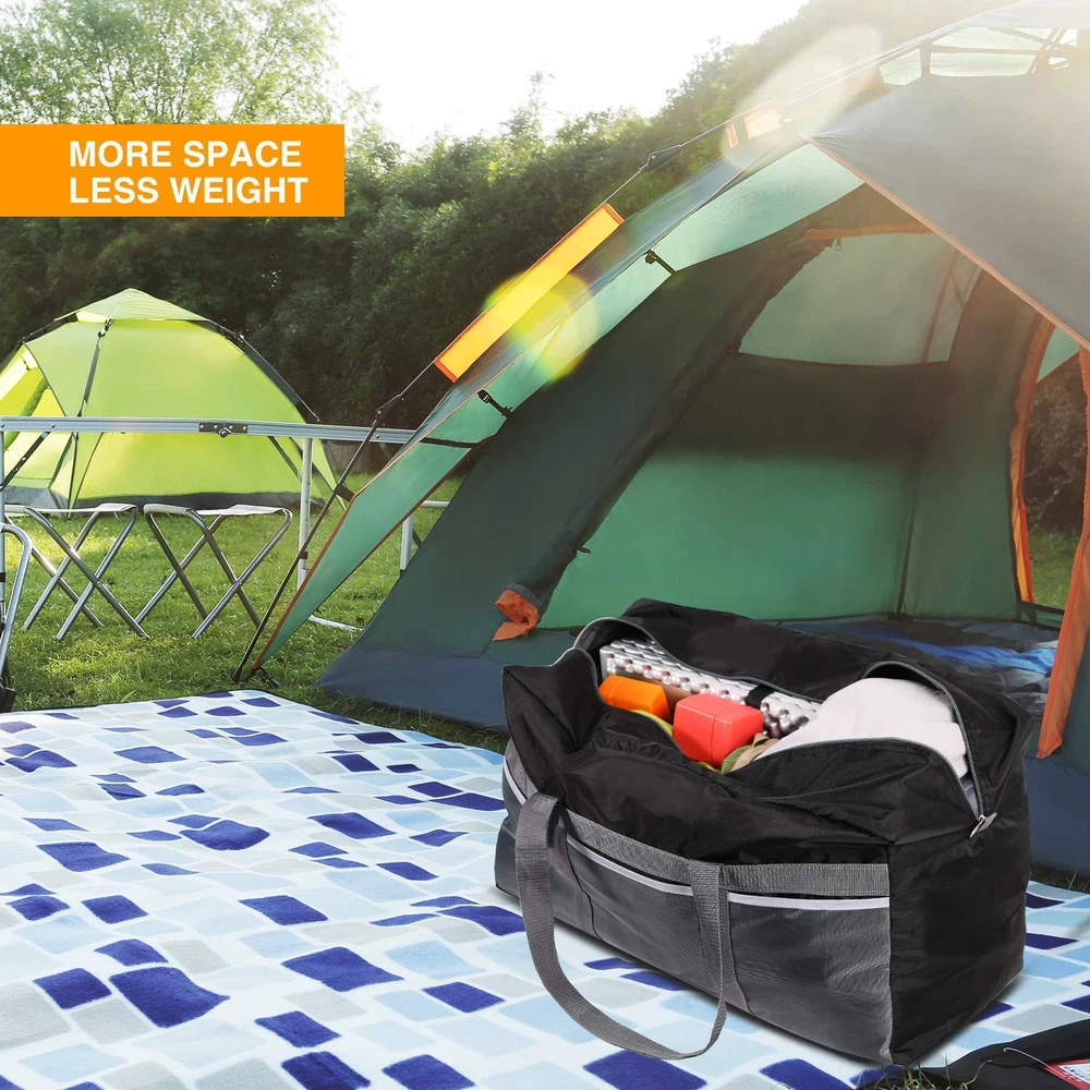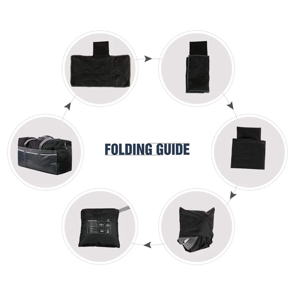 DURABLE/WATER RESISTANT DUFFEL BAG:water resistant duffel bag is made out of high quality 300D Oxford PU450 fabric.Suitable for carrying Sports/Hunting/Traveling/Hiking Gear or any other Outdoor activity. LARGE CAPACITY AND LIGHTWEIGHT:Up to 96L with dimensions of 80x30x40cm/31x12x16 inches (L x W x H); It can be folded into a compact carry pouch of 20x23 cm/ 8x9 inches ( L x W ). Weighs only 0.70 lbs.And 60lbs weight capacity. POCKETS:The large duffel bag is equipped with 3 outside pockets with 3 open mesh pockets on the side. It also has an interior pocket that the duffel bag folds into when not in use. COLORS: Choice of either Black or Light Blue. GANURANTEEDG: offers a 365-day limited manufacturer warranty. If you're not satisfied for any reason, please contact us immediately and we will give you a reply within 24 hours.