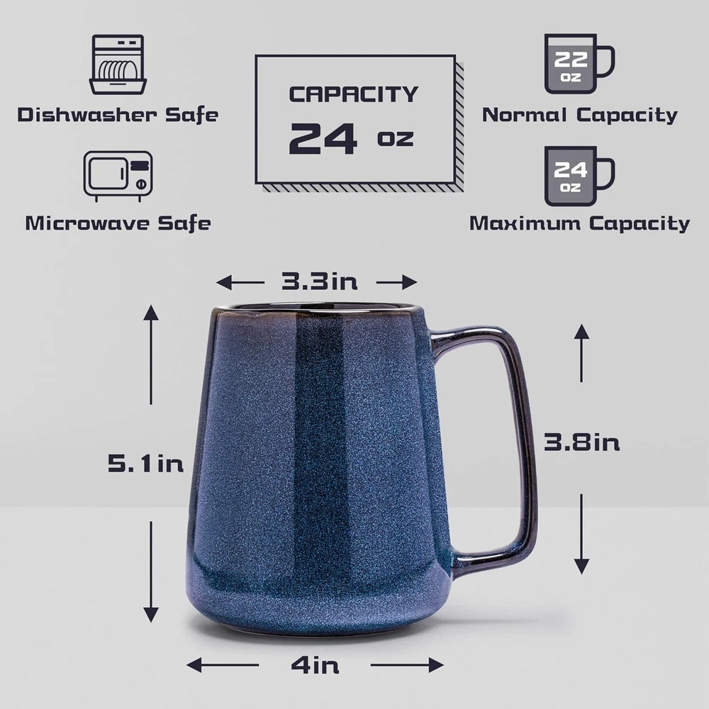 Store New Arrivals Add to Favorite View Feedback Contact Extra Large Ceramic Coffee Mug,24 Oz,Oversized Tea Cup for Home and Office,With Big Handle,Dishwasher and Microwave Safe (24 Oz Blue) Description Item model number 24 OZ Blue Occasion Home Item Weight 1.3 Pounds Style Modern Number of Items 1 Pattern Solid Theme Holiday Unit Count 1.0 Count Product Dimensions 5.9"W x 5.1"H Age Range (Description) Adult Finish Type Hand Painted Specific Uses For Product Cold Drinks, Hot Drinks Material Type Free Cadmium Free Material Porcelain, Ceramic Capacity 24 Fluid Ounces Item Weight 1.27 pounds Material Feature Microwave Safe Reusability Reusable Special Feature microwave_safe, Microwave Safe Manufacturer TsreinhUS Color 24 Oz Blue Shape Round Recommended Uses For Product Home Included Components Handle Brand Tsreinh Product Care Instructions Microwave Safe, Dishwasher Safe Size Extra large Large Capacity - This ceramic mug has a large capacity of 24 oz/700 ml, with a large handle, which absolutely meets your needs for the office and home, you no longer need to refill your coffee multiple times. High Quality - 100% lead and cadmium free, the large coffee mug is made of the highest and safest quality ceramic. Suitable for hot and cold drinks, Microwave and dishwasher safe. Unique Craft - Due to the special reactive glaze technology, each ceramic mug is unique. The color of each cup is naturally formed. A choice of two stylish tall mugs and four stylish wide bottom mugs makes a great gift for the Birthday, Christmas, Fathers Day, Mothers Day,Valentines Day, Anniversary, Wedding, Graduation, Thanksgiving and special occasions. Easy to Clean - Smooth Glaze Make Sure that You Could Clean Coffee Stains or Cocoa Cereal Easily. Multi Purposes - The size is great for a cup of coffee/tea/milk/chocolate/matcha/wine/water. our drop resistant box will keep your gift safe. This unique ceramic mug will appeal to everyone! Beautiful mug makes a decorative and practical gift. Product Description Tsreinh 21oz/24oz Extra Large Coffee Mug Do you prefer a good cup of coffee in the morning, or do you need to replenish coffee at work, but your cup is always empty soon? This will not happen with Tsreinh oversized coffee mugs. 21 oz / 24 oz your favorite drink can be placed in the large cup. with a large handle, suitable for all hands. The wide bottom makes the cup more stable. Large capacity Large handle Excellent workmanship, unique glaze Anti-slip bottom Drop Resistant Packaging ABOUT US We offer the best prices around on high quality products. Our E-store includes media such as books, movies, music and games while offering electronics, toys, sporting apparel, clothing, tools, general home, garden items and more. SHIPPING We are always working hard to ensure your package arrives as soon as possible. Please understand that some factors like weather, high postal traffic, and the performance of shipping companies are outside of our control. RETURNS We offer a 30-Day Return Policy on items which you are not completely satisfied with. You have the option for a full-refund or an exchange of the item. No returns are available on items shipped outside of the USA. PAYMENT We accept PayPal. CONTACT US This page content is yet to come Please ad us to your favorite seller and visit again later Thank You CUSTOMER SATISFACTION We try our very best to make sure every customer is completely satisfied. If there's a problem, message us! We're happy to help.