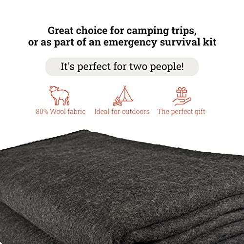 Extra Large Dark Gray Wool Blanket with Zippered Bag for Warmth