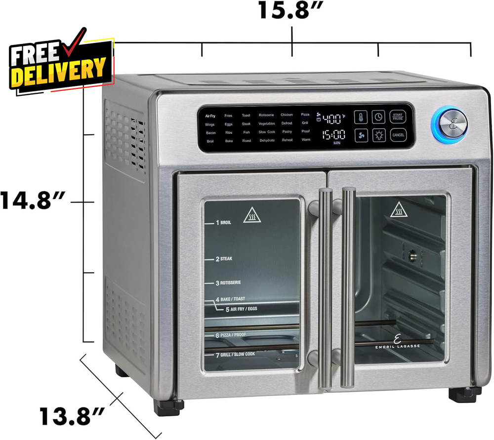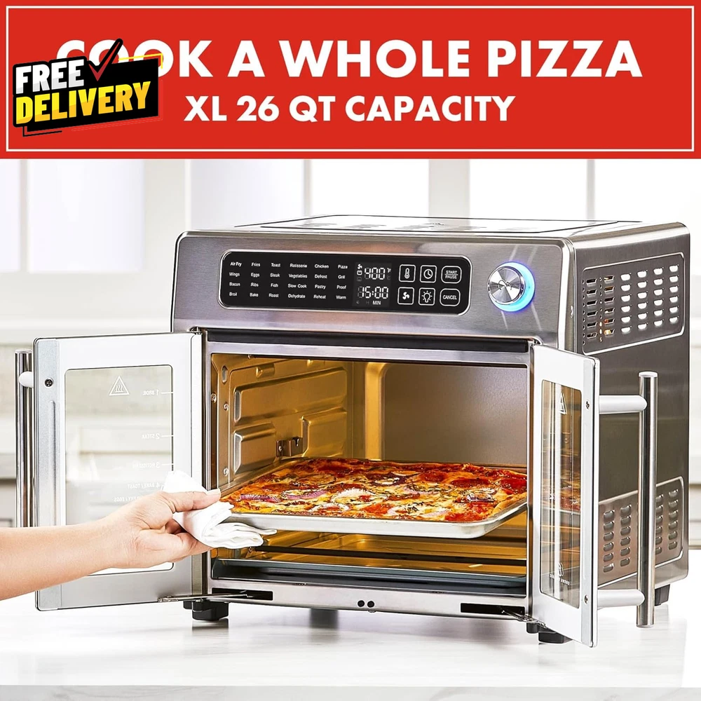 ultimatesavvyshop New Arrivals Add to Favorite View Feedback Contact Extra Large French Door Air Fryer Toaster Oven 26QT 24 Functions Stainless Steel ? PLEASE CONTACT US FIRST BEFORE TAKING ANY ACTION ? If you face any kind of issue , please reach out to us directly . Especially before leaving Negative Feedback, opening an “Item Not Received” case, or starting a Return . ? We are always happy to assist and resolve any problem quickly and professionally! If you have any questions or require assistance, please don’t hesitate to reach out. Description Item model number 4-00675-02X-VN Capacity 24.6 Liters Control Method Touch Has Nonstick Coating No Max Temperature Setting 500 Degrees Fahrenheit Min Temperature Setting 75 Degrees Fahrenheit Output Wattage 1700 Watts Controller Type Touchscreen Product Dimensions 16.9"D x 15.8"W x 14.8"H Material Stainless Steel Outer Material Stainless Steel Model Name Extra Large 26 QT French Door Air Fryer Oven Air Frying Technology True Is Dishwasher Safe No Item Weight 26.5 pounds Special Feature Automatic Shut-Off, Programmable, Temperature Control, Timer Color Stainless Steel Wattage 1700 watts Global Trade Identification Number 10752356835689, 20752356835686 Voltage 120 Volts Recommended Uses For Product Air Fry, Bake, Broil, Dehydrate, Roast Size Extra Large A VERSATILE AIR FRYER AND MULTI-COOKER COMBO: Elevates practically any meal, from air frying quick after-school snacks to roasting for large gatherings. PERFECTLY DONE TOAST: Oven turns off automatically when the toast count-down timer ends, no burnt toast! Indicator light is red while toasting, blue when timer ends and oven turns off. Place rack at indicated toast position for ideal results. DUAL-SPEED FAN: Golden fried crisping at its finest with 360º superheated air circulation for your homemade cooking. 26-QUART CAPACITY: This extra-large 26-quart countertop toaster oven is ideal for preparing meals for 4–6 people. Features a usable cooking space of 14" L × 13" W × 7" H, allowing you to rotisserie up to a 6-lb chicken or bake a 12” pizza with ease. STAINLESS STEEL EXTERIOR: A stainless-steel exterior provides a beautiful aesthetic to any kitchen, taking your party hosting to the next level. And elegant French doors open with a single pull; interior light allows you to monitor food ABOUT US Prior to making any purchase from our store, we’d like to introduce ourselves. My name is Shahzad Yaqub , and I am the proud owner of Epic Emporium Deals , located in the great state of Illinois, USA. I have been an active and trusted eBay seller since Jan 14, 2025 . At Epic Emporium Deals , we are committed to offering competitive prices and top-quality products . Our extensive collection features a wide variety of items, including media such as books, movies, music, and games , as well as electronics, toys, sporting apparel, clothing, tools , and general home and garden essentials —and much more! Your satisfaction is our priority, and we look forward to providing you with an exceptional shopping experience. SHIPPING We are always working hard to ensure your package arrives as soon as possible. Please understand that some factors like weather, high postal traffic, and the performance of shipping companies are outside of our control. We offer free shipping to the lower 48 states and ship within 2 business days of payment, usually sooner. We do not accept P.O. Boxes. Please provide a physical address. For shipping outside of the continental USA, we only use eBay's Global Shipping Program. The item is shipped to IL and then sent to the rest of the world. International customers are responsible for all duties and taxes. Continue to 'check out' to calculate costs for shipping the item to your country. Messages regarding eBay's Global Shipping Program MUST be directed at eBay EXCLUSIVELY. RETURNS We do not accept returns under normal circumstances. However, we will gladly consider a return if the item is received broken or if the wrong size is sent to you. In all other cases, returns will not be accepted. CUSTOMER SATISFACTION We try our very best to make sure every customer is completely satisfied. If there's a problem, message us! We're happy to help.
