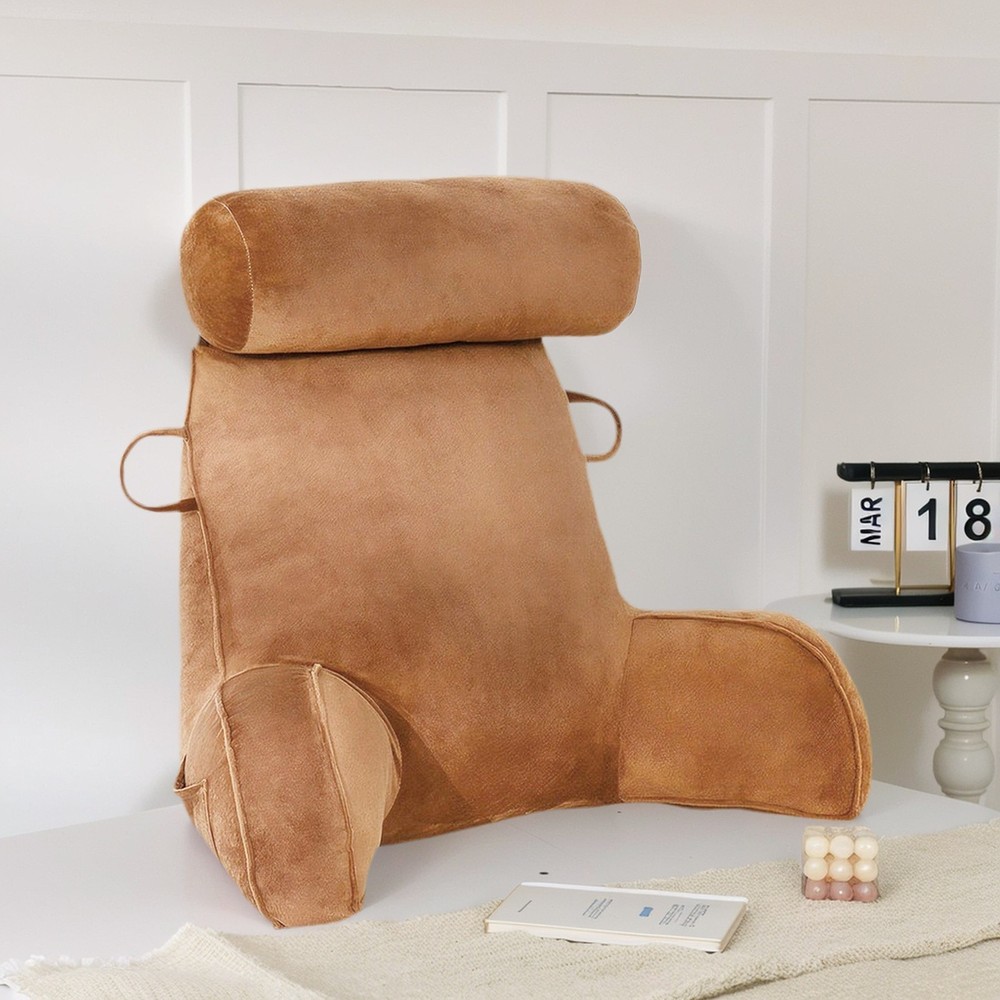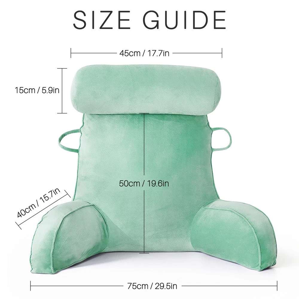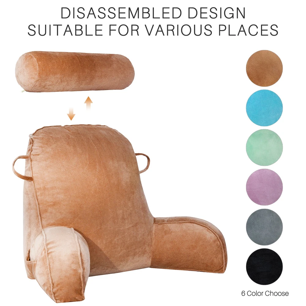 Similar Items Description This reading pillow is an oversized pillow with arms that provides exceptional comfort, relief from aches and pains, and a better sitting posture. Reading pillows conform to the back and arms whether the child’s sitting in bed, or on a chair, couch or the floor. Supports back & arms when reading, watching TV, or relaxing: Filled high quality pure fiber,velvet cover is soft and breathable Bigger and taller size for the ultimate comfort: Overstuffed pillow for a cozy and secure feeling Versatile and convenient: Use it everywhere: bed, chair, couch, floor – two handles are designed on the side makes it easy to carry Reduces aches and pains: Promotes proper posture and lumbar support with arm rests for holding a book, video game controller or tablet As one of the perfect gift choices: it is suitable for adults, teenagers, fathers, mothers, grandpas, grandma, pregnant, etc. Specification: Reading Pillow Size: 75cm * 40cm * 50cm Special Feature:Durable Size:Large Fill Material:Polyester Age Range (Description):Kid / Andult Recommended Uses For Product Reading Use for:Head, Neck Material:Polyester Item Firmness:Soft Number of Pieces:1 Pattern:Solid Multiple use-this back cushion can be put anywhere, such as your bed, sofa, car, office and etc. Washing: Care instructions Hand wash. Do not bleach. Tumble dry, low temperature. Do not iron. Package include: 1 x Reading Bed Rest Pillow Notice: 🔥1. Due to manual measurement, please allow 1-3mm error, thanks. 🔥2. Do not use bleach or wash with same/similar colors 🔥3. Due to the light when the photo was taken or the monitor's display, the picture may not reflect the actual color of the item. We guarantee the style is the same as the picture.