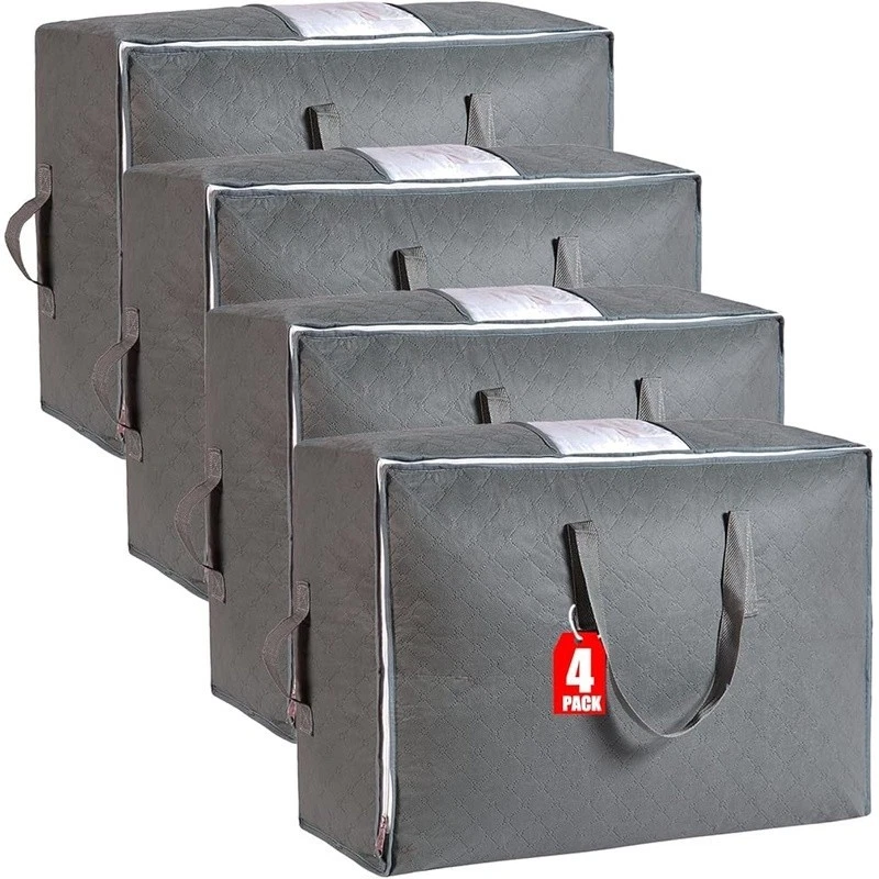 Heavy Duty 40 Gallon Wheeled Industrial Tote W/ Drip Resistant Lid Storage New 30.64 USD 32.95 USD Free shipping 7% off Cozy Electric Heating Blanket Faux Fur Soft Warm Throw Home Office Use 41.74 USD 44.88 USD Free shipping 7% off Bagless Upright Vacuum 720W Lightweight Multi Surface Cleaner 25ft Cord New 67.52 USD 72.6 USD Free shipping 7% off 10 Piece Glass Mixing Bowls Set W/ Lids Food Storage Prep Serving Dish New 19.31 USD 20.76 USD Free shipping 7% off Soft Heated Blanket Twin Sherpa Electric Auto Off 5 Heat Settings Comfortable US 41.84 USD 44.99 USD Free shipping 7% off Electric Heated Blanket Soft Warm Auto-Off 5 Heat Settings Safe Eco-Friendly New 41.75 USD 44.89 USD Free shipping 7% off Convertible Futon Sofa Bed 3 Adjustable Positions Stain Resistant Compact Design 142.22 USD 152.92 USD Free shipping 7% off Large Gravity Pet Waterer Dogs Cats Easy Clean Hydration System 4 Gallon New 32.86 USD 35.33 USD Free shipping 7% off Adjustable Freestanding Rifle Rack Holds 10 Guns Easy Assembly Gun Display Stand 46.26 USD 49.74 USD Free shipping 7% off 300ct Baby Wipes Light Fresh Chamomile Hypoallergenic Soft Thick Resealable New 11.09 USD 11.92 USD Free shipping 7% off Premium BBQ Apple Wood Chunks Smoking Grilling 500 Cu In Natural Flavor New 14.51 USD 15.6 USD Free shipping 7% off Wet Dog Food Chopped Ground Dinner Beef Canned Adult Nutrition 4 Pack 22oz Cans 15.34 USD 16.49 USD Free shipping 7% off About this item Extra Large Storage Capacity: Measuring 27.5" (L) x 12" (W) x 20" (H), this 105L Large storage bag offers ample space to store oversized comforters, bedding sets, blankets, pillows, seasonal clothing, plush toys, sweaters, and other soft items. Its roomy design keeps your belongings neatly organized. Premium Material: Crafted from odorless, triple-layered composite non-woven fabric, this storage bag combines softness with durability. The reinforced material resists wear, moisture, and dust while protecting contents. A clear viewing window allows quick identification of stored items. 4 Reinforced Handles for Easy Transport: Features 2 top handles for lifting and 2 side handles for sliding the bag in tight spaces. All handles are double-layered with thickened fabric for enhanced weight capacity and long-term use. Heavy-Duty Zipper: Equipped with a smooth-gliding #5 stainless steel zipper, this bag ensures secure closure even when fully packed. The two-way zipper design simplifies opening/closing without compromising durability. Space-Saving Foldable: Perfect for closets, under-bed storage, dorms, attics, or basements. This collapsible bag (no rigid frame or base) folds compactly into drawers when not in use, maximizing storage flexibility. Brand: Material: Fabric Color: Grey Product Dimensions: 27.5"L x 12"W x 20"H Special Feature: Lightweight Recommended Uses For Product: Bedding Storage, Blanket Storage, Closet Organization, Clothes Storage, Comforters Storage, Pillow Storage See more Closure Type: Zipper Shape: Rectangular Number of Items: 3 Size: 3pack You may also like Animal Drawing Set 12 Colored Pencils Learn to Draw Butterflies Art Supplies New 27.48 USD 29.55 USD Free shipping 7% off Durable Stainless Steel Griddle Spatula 2-Pack Ergonomic Handle Dishwasher Safe 33.03 USD 35.52 USD Free shipping 7% off Aluminum Square Cake Pan Set W/ Lids 8 inch Disposable Baking Pans 3 Count New 58.55 USD 62.96 USD Free shipping 7% off Non-Stick Fry Pan Ergonomic Handle Induction Safe Dishwasher Safe Cookware New 58.07 USD 62.44 USD Free shipping 7% off Soft Bait Binder Fishing Tackle Organizer W/ Heavy Duty Sleeves & Storage Bags 41.64 USD 44.77 USD Free shipping 7% off Non-Stick Jumbo Muffin Pan Baking Tray Durable Cupcake Tin Easy Release 6-Cup US 25.5 USD 27.42 USD Free shipping 7% off 3 Tier Wall Shelf Wooden Bracket Decorative Display Unit Home Organization New 30.5 USD 32.8 USD Free shipping 7% off Adjustable Height Plastic Folding Table 40" Black Portable & Easy to Clean New 61.29 USD 65.9 USD Free shipping 7% off Preschool Activity Assembly Toy Set Bolts Electric Drill Kit Transparent Base 53.45 USD 57.47 USD Free shipping 7% off Universal Packing Box TVs Mirrors Art Includes Foam Corners Bubble Roll New 35.98 USD 38.69 USD Free shipping 7% off 3-Tier Industrial Metal End Table W/ Storage Shelves Living Room 2-Pack New 111.61 USD 120.01 USD Free shipping 7% off Reflective Premium Dog Collar Metal Buckle Heavy Duty Olive Green Extra Small US 16.46 USD 17.7 USD Free shipping 7% off