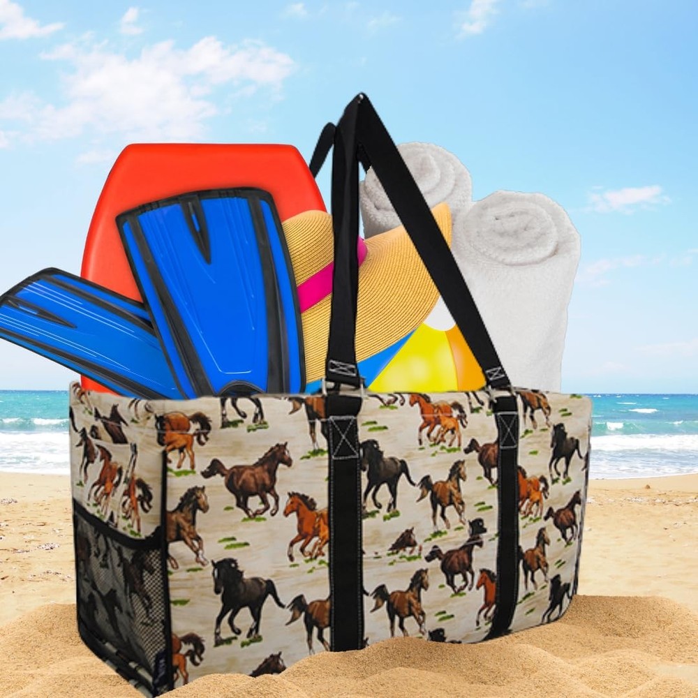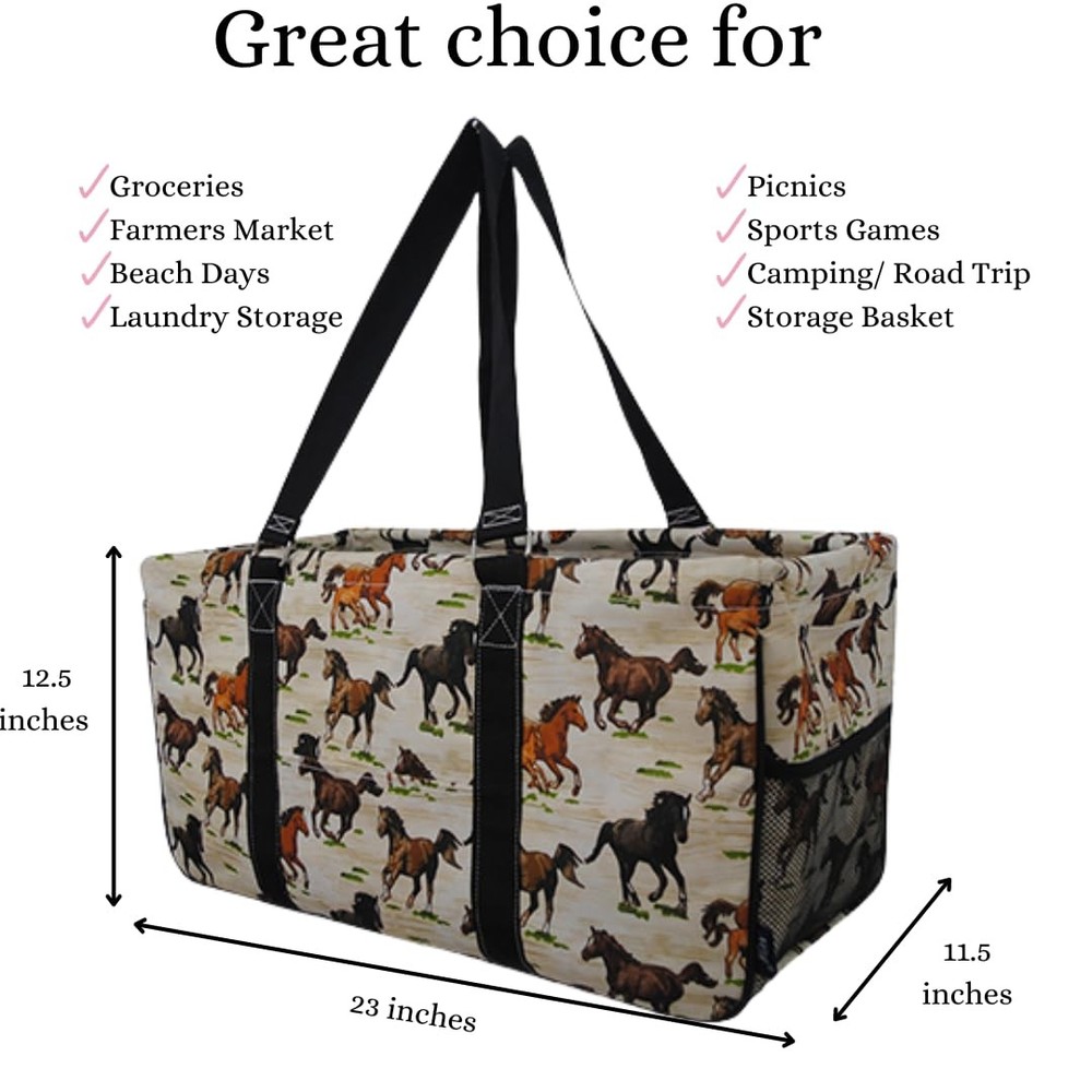 Cute multi purpose classic utility tote bag. Collapse when not used. Constructed with water resistant nylon material. Push down metal bars and velcro to maintain the shape of the bag. Open basket style. Size of the bag is 23 x 10 x 10. Extra large size classic open utility tote bag. Can be used as shopping bag (warehouse clubs), overnight, weekender bag, beach bag, storage basket, craft bag, closet organizer basket and more! Haul your tools, groceries, beach towels, or camping gear on the go. Open top makes it easier to throw and pick up things in the bag. Convenient side mesh pockets and mini open pocket for small items. Double carrying handles. Handle drop approximately 13". Monogram Ready (Monogram sold Separately). Great gift idea for your friends and family. ① Cute multi purpose classic utility tote bag. Collapse when not used. ② Constructed with water resistant canvas material. Push down metal bars and velcro to maintain the shape of the bag. Open basket style ③ Size of the bag is 23 x 10 x 10. Extra large size classic open top utility tote bag. Can be used as shopping bag (warehouse clubs), overnight, weekender bag, beach bag, storage basket, craft bag, closet and shelf organizer basket and more! ④ Double carrying handles. Handle drop approximately 13". Monogram Ready (Monogram sold Separately). Great gift idea for your friends and family. Not intended for children 12 years and younger.