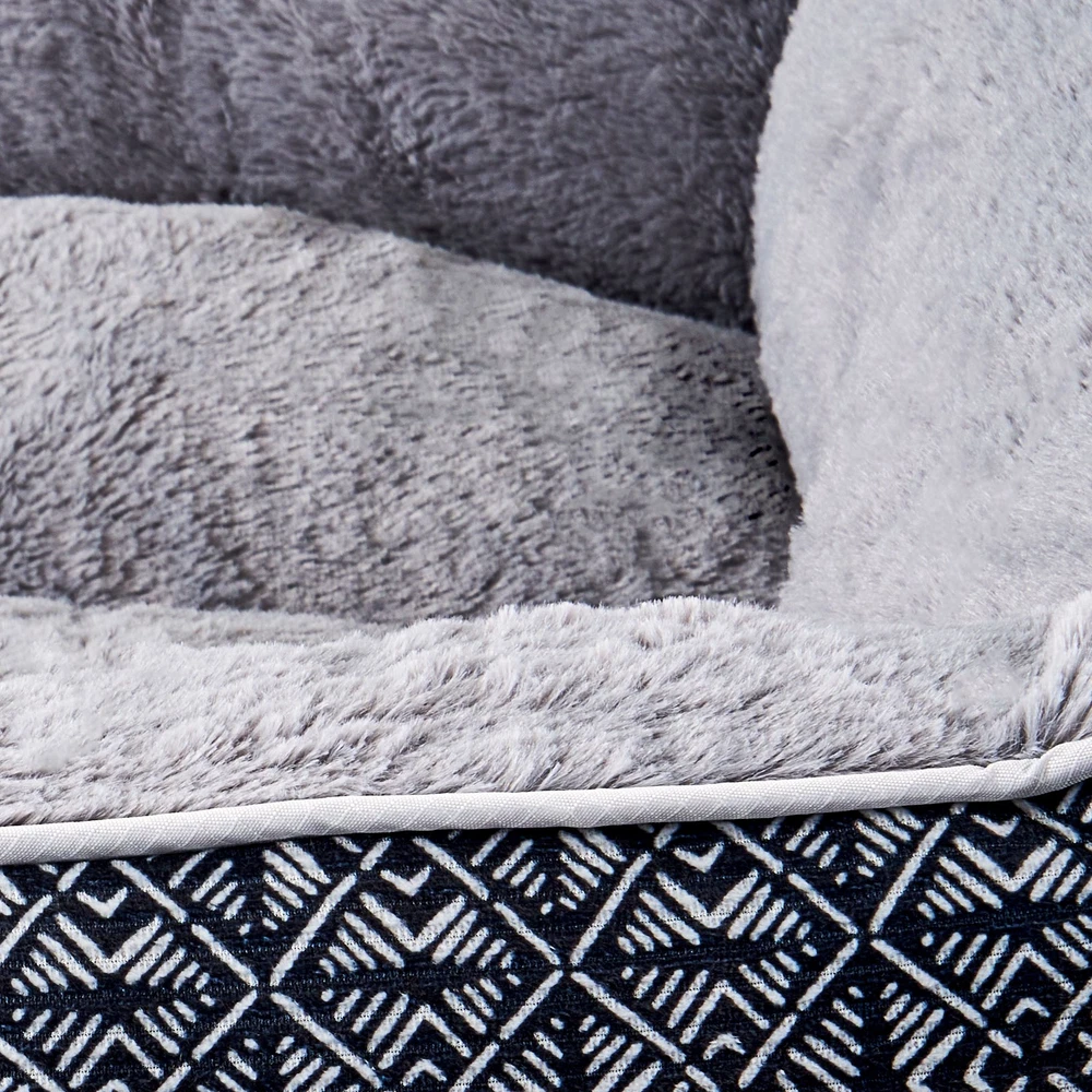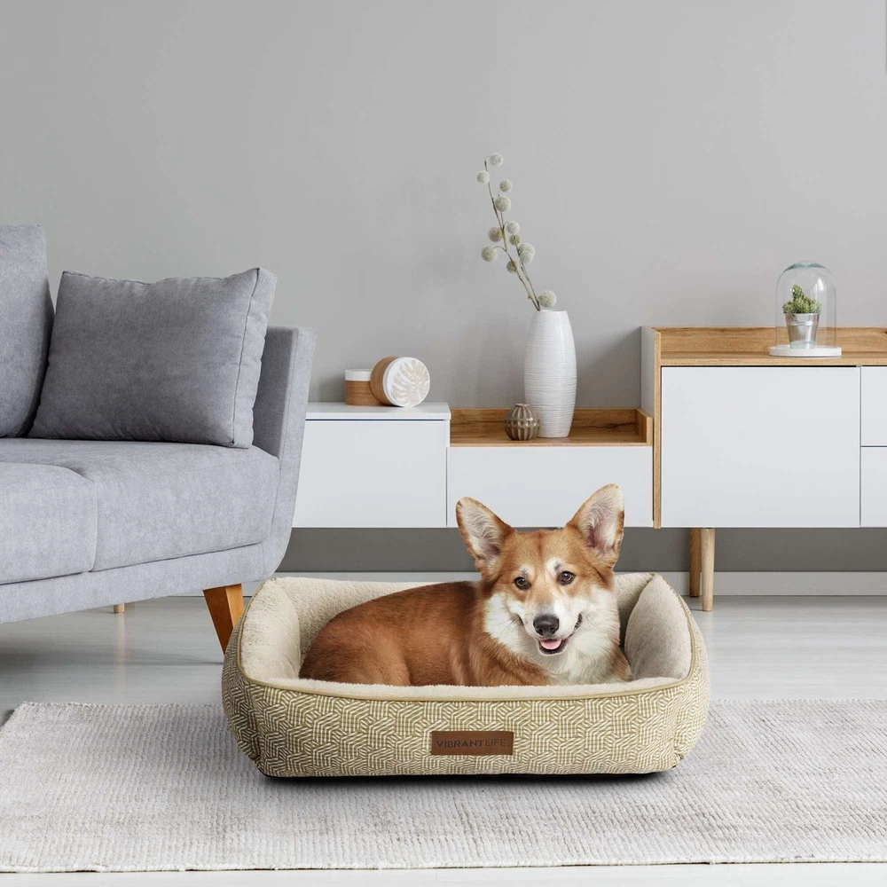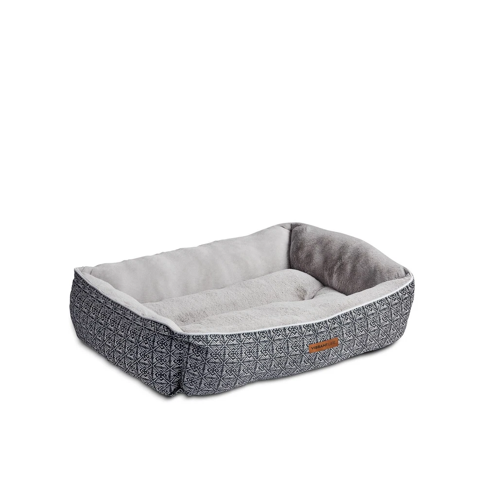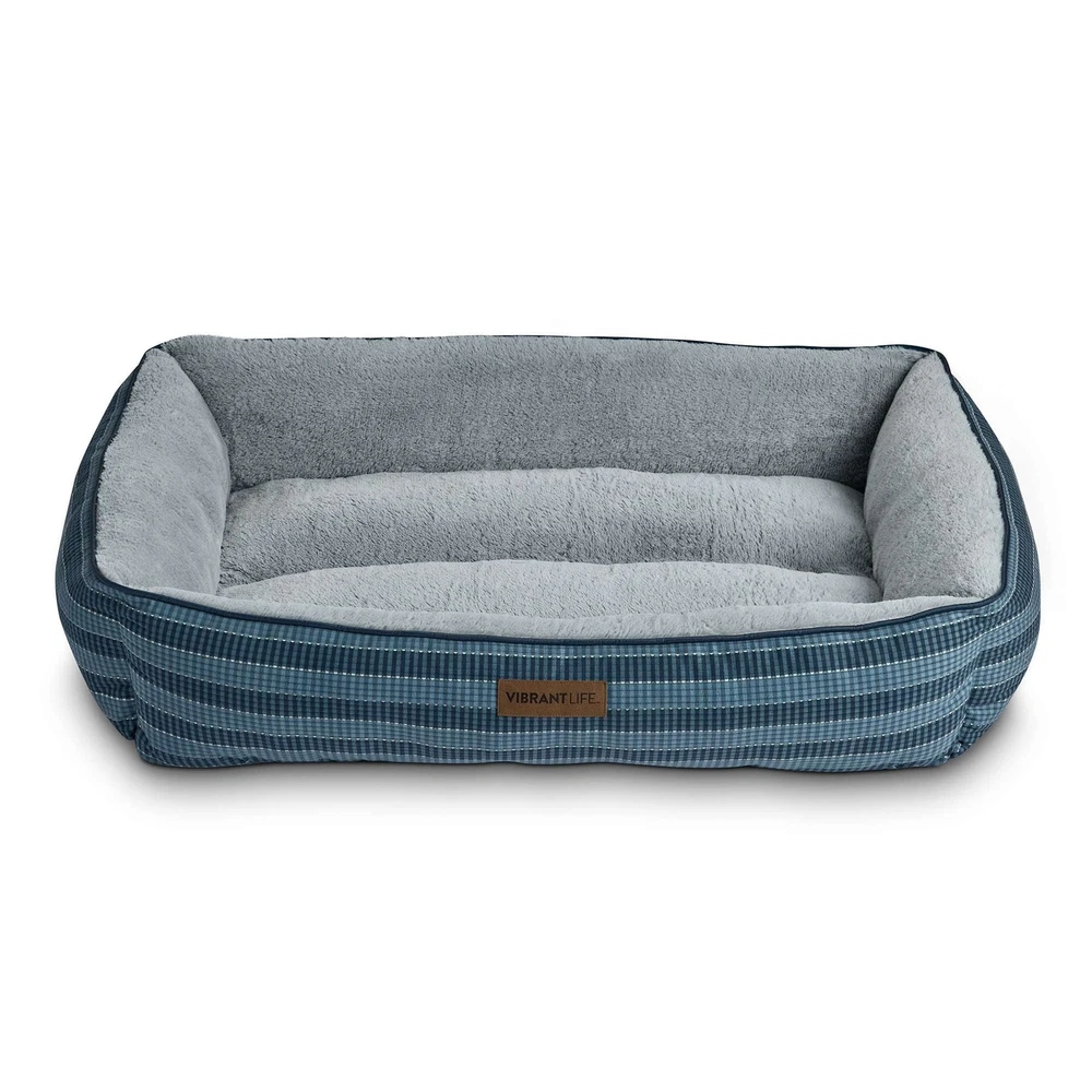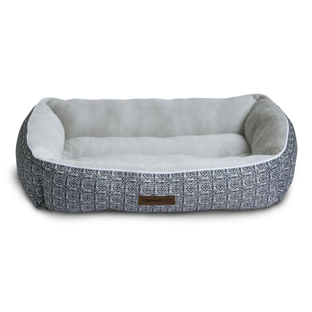 The Vibrant Life Extra Large Lounger Dog Bed will provide your pet with a cozy and tranquil space to unwind. Measuring 42" by 32", this comfy dog bed is ideal for extra large dogs up to 150 pounds like English Mastiffs and Great Danes. This contemporary dog bed has reinforced walls that give your pet support and comfort as well as a soft place to sleep. You will rest easy, too, knowing that this washable dog bed is made with 100% recycled fill material. Soft & Cozy Sleep Area Bolstered Walls for Comfort & Support Machine Washable