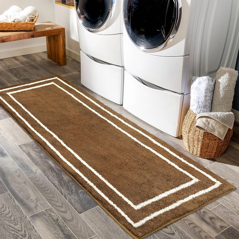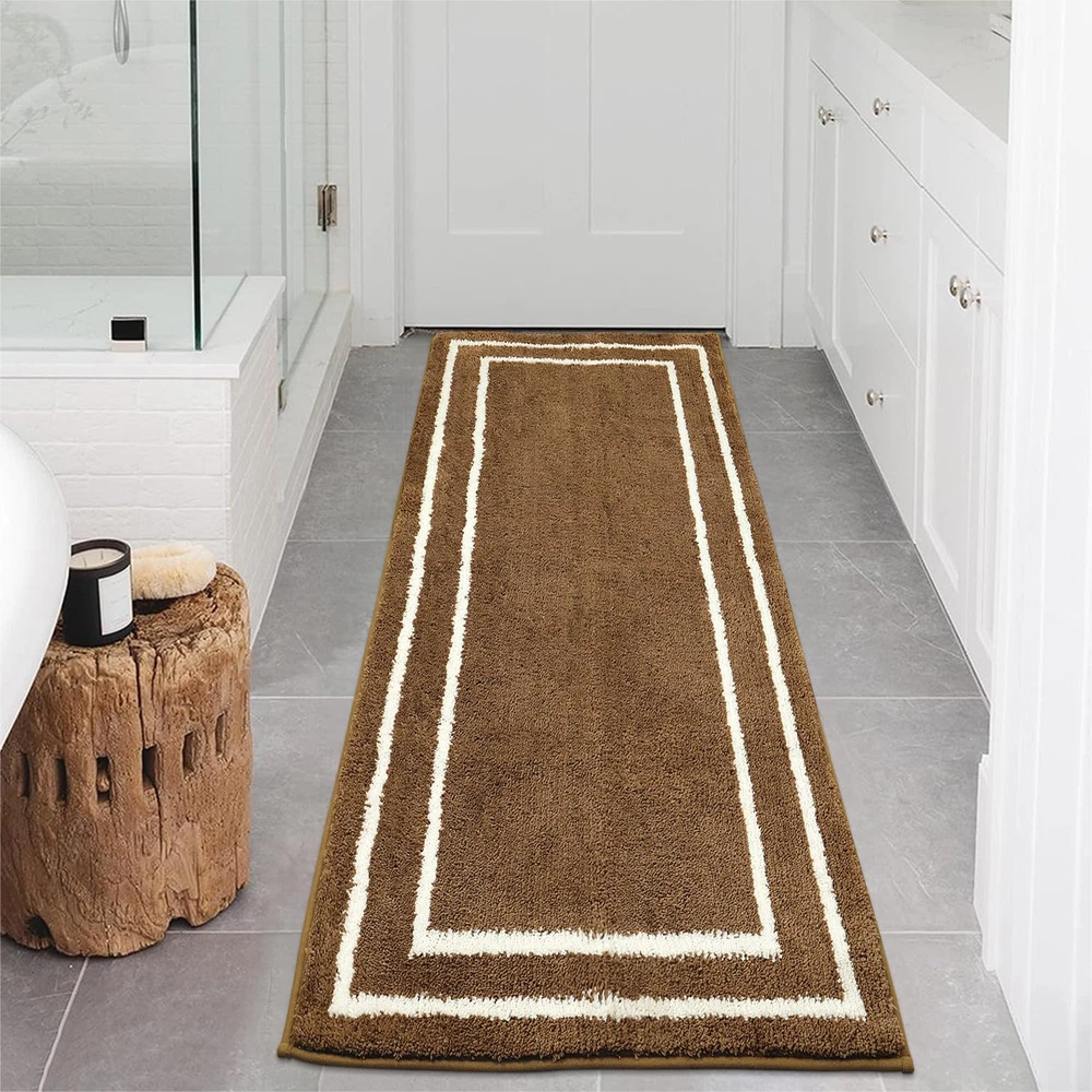 [Super Cozy Microfiber] This upgraded long bath rug is elegantly crafted from 120% polyester fibers, which are soft enough to give your feet the gift of exceptional comfort. Without stepping on cold hard floors, just enjoy a warm and cozy floor mat, and pamper yourself with such softness and luxury. [Non-Skid TPR Backing] Safety is a priority, and that's why this shower carpet is designed with an anti-skid rubber backing. It firmly grips the floor, ensuring you and your family can safely walk in the bathroom without worrying about slippery surfaces. [Excellent Water Absorption] Microfiber bath runner is remarkable for the outstanding absorbency and quick drying. This rug will quickly soaks up an impressive amount of water into fiber. Step out of the shower onto a dry and comfortable mat, and you will get a clean and safe shower environment. [Machine Washable] Convenience is key, and this throw rug delivers. This bathroom floor mat is almost free of fiber-shedding issues with the densely and firmly woven. Machine-washable construction makes cleaning up a breeze. [Multifunctional Use] This bath mat for tub comes in various size-color choices to meet your needs. Whether it's near the bathroom entryway, bathtub, sink, toilet, bedroom, laundry, or even hallway, it seamlessly blends in and completes the look of any space. Brighten up your home with this versatile and stylish runner rug.