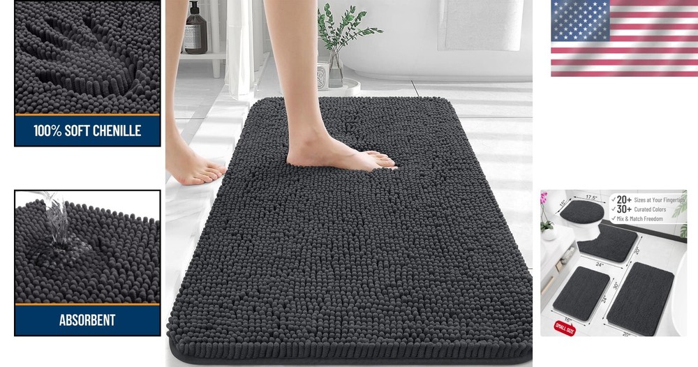 $ 10.56Luxury Chenille Bath Mat 30x20 - Ultra Soft Quick-Dry Machine Washable