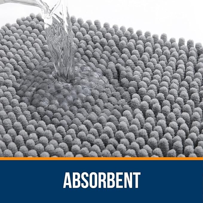 Extra Soft Chenille Bathroom Rugs 30x20 with Absorbent Quick-Dry Design and Non-Slip Rubber Backing