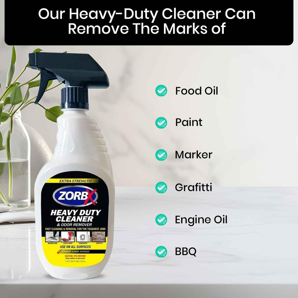 Store New Arrivals Add to Favorite View Feedback Contact Extra Strength Heavy Duty Cleaner & Odor Remover 24 Fl Oz - Fast-Acting Black Marker/Paint/Graffiti/Adhesive Remover, All-Purpose Cleaner for Hard Stains - Concrete, Wood, Metal, Glass Description Item model number 7100 Scent citrus scented Product Dimensions 4.75 x 2.25 x 10.75 inches Country of Origin USA Item Weight 1.5 pounds Material Feature Hypoallergenic Is Discontinued By Manufacturer No Item Form Liquid Specific Uses For Product Paint, Graffiti, Paint Brush, Black Marker, Latex Paint, Adhesives Manufacturer Inc VERSATILE CLEANING SOLUTION: This multipurpose cleaner tackles tough stains and odors on various surfaces. Use it as a car window cleaner to restore shine and visibility or to clean graffiti, paint, and adhesive residues. POWERFUL FORMULA FOR TOUGH JOBS: Designed as a heavy-duty cleaner, this ZORBX all-purpose cleaner breaks down stubborn grime and buildup. The fast-acting formula starts working on contact to lift away hard-to-remove stains and odors with minimal effort. The advanced L.B.R. technology (Lift, break, Remove) removes both old and new odors from hard surfaces. SPRAY AND WIPE CONVENIENCE: No matter how careful you stay, mishaps can still happen. What to do if your kids write on the walls with a black marker? This extra-strength concrete cleaner spray simplifies cleaning tasks. Just spray directly on the affected area, wait briefly, then wipe clean - no scrubbing is required for most stains. REMOVES ODORS AT THE SOURCE: More than just a surface cleaner, this odor remover and concrete cleaner solution destroys odors deep down. Whether you have a black marker stain on your wall or have latex paint spots, our all-purpose cleaner spray will help you remove the bad odors and keep things smelling fresh and spotless all the time. CONCENTRATED FOR LASTING VALUE: A little goes a long way with this heavy-duty all-purpose cleaner concentrate. It's also effective as a paint remover for wood, metal, glass, and more. Reduces time spent cleaning and scrubbing surfaces. Product Description 1 MARKER, INKS 2 LATEX PAINTS 3 ADHESIVES 4 GRAFFITI Maximum Cleaning Power Superior Cleaning Power for Large Areas & Tough Stains, in One Easy Bottle Refresh Your Space Freshen Your Surrounding Space by Removing Tough Odors & Stains 1 24 Oz 2 Citrus Based Before Tough Stains Latching onto Surfaces? After Use ZORBX for Spotless Surfaces & Fresh, Odor-Free Living in Seconds! CHOOSE YOUR STAIN & ODOR REMOVERS Add to Cart Add to Cart Add to Cart Add to Cart Add to Cart Customer Reviews 3.8 out of 5 stars 92 3.9 out of 5 stars 17 3.1 out of 5 stars 13 4.0 out of 5 stars 8 3.8 out of 5 stars 10 Price $19.99 $ 19 . 99 $25.97 $ 25 . 97 $19.99 $ 19 . 99 $25.99 $ 25 . 99 $24.99 $ 24 . 99 Made in USA ✔ ✔ ✔ ✔ ✔ No Harsh Chemicals ✔ ✔ ✔ ✔ ✔ Multi Surface Cleaner ✔ ✔ ✔ ✔ ✔ Furniture Stains Cleaner ✔ ✔ ✔ ✔ ✔ Citrus Based ✔ ✔ ✔ ✔ ✔ ABOUT US We offer the best prices around on high quality products. Our E-store includes media such as books, movies, music and games while offering electronics, toys, sporting apparel, clothing, tools, general home, garden items and more. SHIPPING We are always working hard to ensure your package arrives as soon as possible. Please understand that some factors like weather, high postal traffic, and the performance of shipping companies are outside of our control. We offer free shipping to the lower 48 states and ship within 2 business days of payment, usually sooner. We do not accept P.O. Boxes. Please provide a physical address. For shipping outside of the continental USA, we only use eBay's Global Shipping Program.The item is shipped to KY and then sent to the rest of the world. International customers are responsible for all duties and taxes. Continue to check out in order to calculate costs for shipping the item to your country. Messages regarding eBay's Global Shipping Program MUST be directed at eBay EXCLUSIVELY. RETURNS We offer a 30-Day Return Policy on items which you are not completely satisfied with. You have the option for a full-refund or an exchange of the item. No returns are available on items shipped outside of the USA. PAYMENT We accept PayPal. CONTACT US This page content is yet to come Please ad us to your favorite seller and visit again later Thank You CUSTOMER SATISFACTION We try our very best to make sure every customer is completely satisfied. If there's a problem, message us! We're happy to help. WE ACCEPT Copyright © 2021 AutoDS. | All Rights Reserved
