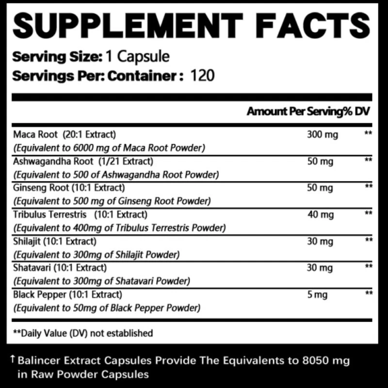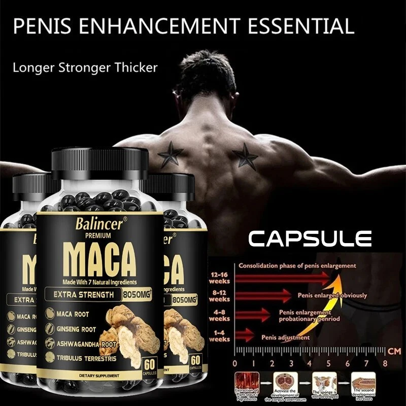 Department: Men FDA Registration Number: 12397111146 Production Date: 09/2024 When to Take: After Meal Number of Pills: 30/60/120 Shelf Life: 2 years Ingredients: Maca MPN: L-0911 Country/Region of Manufacture: Unknown Main Purpose: Stamina Item Weight: 1.45oz 2.09oz 3.6oz Expiration Date: 09/2026 Brand: Balincer Dosage: 8050MG Features: All Natural, Easy to Swallow, Eco-Friendly Storage: Keep in a cool, dry place and please sealing Active Ingredients: Maca, Ashwagandha, Ginseng, Tribulus Terrestris Formulation: Capsule Type: Supplement