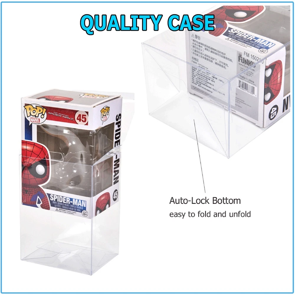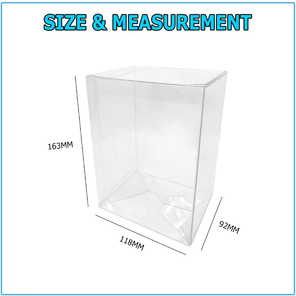 Welcome to Kumbala eBay Store Description: - 100% Brand New - 4" Inch Clear Plastic Protector Case - Material: PET - Size: 4 Inch - Color: Clear - Case has a another layer of protective film which can be peeled off - This clear plastic protector case can help display and protect your collection at the same time. - Our plastic protector case will help maintain pristine condition and keep them safe from the elements. - Made of high quality PET plastic, our protector case will not deteriorate over time. - With a 0.35mm thickness, it will provide great protection without sacrificing crystal clear display. - Each Pop protector box has a special coating that helps prevent scuffs and scratches while on display or in storage. - All cases will come with an easy to peel protective film to prevent damage of the cases before getting to you. - Just peel the film for crystal clear display. - With an auto locking bottom, setting up the case is a breeze as everything automatically locks into place when you open the case to use. Assembly : - For best use, please bend each part prior to assembling the case. - This will make it e asier to bound the connect tabs together. - To assemble the bottom part, take the non-long part that looks like a 'U' and fold it down first. - Next take the two side tabs and fold them inward where they are on top of the first 'U' tab. - Lastly, take the last tab and fold inward and push slightly down until the end point of the tab is under the first 'U' tab. - Once this is done, release. You now have the bottom of the case folded. Included in this package: - Please choose the quantity - Shipped according to your order size Warranty & Customer Service : 30 days money back 60 days seller's guarantee, 24 Hours friendly customer service!
