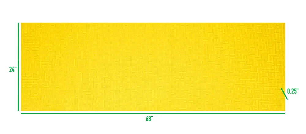 1/4” Thick All-Purpose Mat With high density foam material, the 1/4” premium mat comfortably cushions spine, hips, knees, and elbows on hard floor. Thicker than most other PVC mats on the market, The Yoga Mat will serve its purpose and provide maximum comfort and cushion for your workout routine. An Anti-Tear Yoga Exercise Mat With integrated anti-tearing net and high quality material, you may use this mat for all types of yoga poses and exercise routines without the worry of damaging the cushioned floor mat. Made with attention to details so that you can focus on your workout routine and get that body into tip-top shape. Extremely Easy To Clean The All-Purpose Exercise Mat is super easy to clean and maintain. The mat can be wiped clean with wipes or a soft, damp cloth. Carrying Handle Included Equipped with a carrying strap for your convenience. Easily bring your yoga exercise mat to the gym, pilates class, the park, or your friends house for a friendly workout session. When yoga mat is not in use, you can conveniently roll up the mat and store it in a utility closet for easy storing. Specifications Color: Black Material: PVC Assembly Required? No assembly is required. Dimensions: 68” L x 24” W x 0.3” H PERFECT WORKOUT COMPANION - Utilizing high-density eco-friendly materials, the 1/4″ thick premium mat comfortably cushions spine, hips, knees, and elbows on hard floors while keeping you balanced MULTI-PURPOSE MAT - This multi-purpose mat works great for all types of fitness and exercise routines including yoga, pilates, flexibility training, and any other workout where additional cushion and support is needed DOUBLE-SIDED NON-SLIP - Equipped with dual-side non slip surface, perfect for those passionate about their workouts, this all-purpose premium yoga mat offers a slip-resistant advantage on both sides SUPERB RESILIENCE - Our exercise fitness mat allows you to keep your balance during your home routine, and bounces back quickly, so you don’t leave permanent dents from holding your tree pose for an extended period DIMENSIONS - 68″ L x 24″ W x 0.25″ H CARRYING STRAP - Easily travel with your yoga mat to the gym or pilates class with the included carrying strap, which keeps your mat rolled up and allows you to transport it without stress NON-TOXIC PREMIUM MATERIAL - Constructed of PVA material, these yoga mats resist moisture damage and hold their shape, making them easy to clean, and ideally suited for indoor or outdoor exercises TEXTURED SURFACE - Our yoga mat has a textured surface for enhanced traction at the gym or in your home, so you can feel secure as you stretch LIGHTWEIGHT DURABILITY - Designed to withstand everyday use for tons of usage, this yoga mat includes anti-tearing net and high quality material to ensure its sustainability through most yoga poses and exercise activities EXTRA THICK - The thick layer cushions your feet when standing and stretching, supports your body throughout all types of exercising routines, and provides comfort during restorative poses