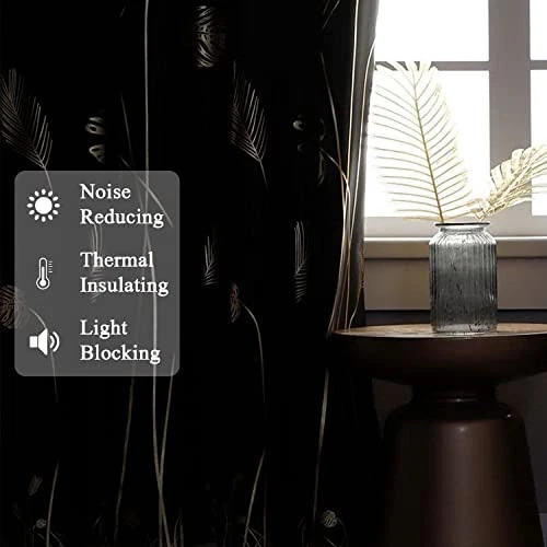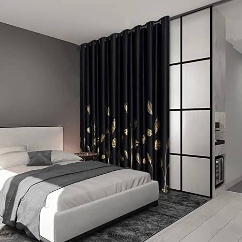 Curtain pleat: Pencil Item Weight: 3 Pounds Room Type: Bedroom, Living Room, Sliding Door, Dining Room Hanging Method: Grommet Item model number: RD10000D-2 Product Care Instructions: Hand Wash Only Curtain Form: Door Panel Curtain Pattern: Leaf Water Resistance Level: Not Water Resistant Recommended Uses For Product: Indoor Weave Type: [PO] Possible Twill Opacity: Blackout Top Style: Grommet Included Components: Grommet Manufacturer: Does Not Apply Lining Description: Unlined Product Dimensions: 84"L x 100"W EAN: Does Not Apply Date First Available: March 24, 2022 Number of Items: 1 MPN: Does Not Apply Material: Polyester, Polyester Blend Compatible with Rod Size: 1.6 Inches Model Name: 1 Item Height: 1 Style: Modern Unit Count: 1.0 Count UPC: Does Not Apply Special Feature: Thermal Insulated, Blackout Seasons: All Season Country of Origin: China Indoor Outdoor Usage: Indoor Size: 100"W x 84"L (Pack of 1) Color: Black/Gold Print Package Weight: 1.6 Kilograms Fabric Type: 100% Polyester Closure Type: Grommet Item Length: 1 Brand: Does Not Apply Type: Does Not Apply gtin13: Does Not Apply Specific Uses For Product: Room Darkening, Privacy, Sun Protection, Decorative Theme: Leaves Item Width: 1