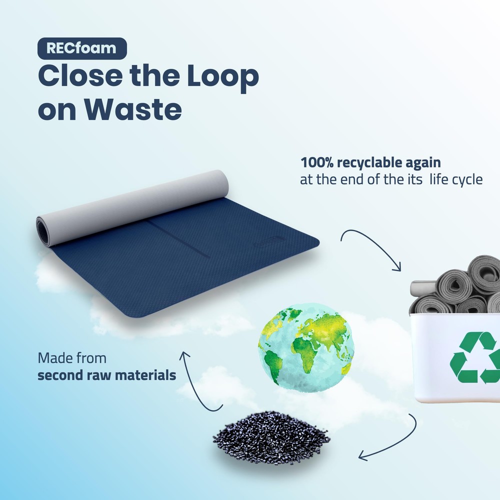 【Extra Space for Extra Comfort】 With a size of 72x36 inches, our extra large yoga mat is 50% wider than traditional mats, offering ample space for men and plus-size women to move freely and comfortably during their workout. 【Eco-friendly & Recyclable】Crafted from 100% recyclable premium Recfoam, our large exercise mat is not only durable but also kind to the environment, ensuring no harm to our planet during its lifecycle. 【Dual-sided Non-slip Design】Our workout mats for home gym features two different colors and patterns, enhancing its anti-slip properties and allowing you to switch sides based on your mood and workout needs. 【Center Alignment Line for Balance】The unique center alignment line helps you position your moves accurately and maintain balance, enhancing your yoga experience. 【Lightweight & Portable with Yoga Strap】Weighing just 2.7 pounds, our fitness mat is easy to carry and store. It comes with a yoga strap that can be used for carrying the mat or for stretching exercises.