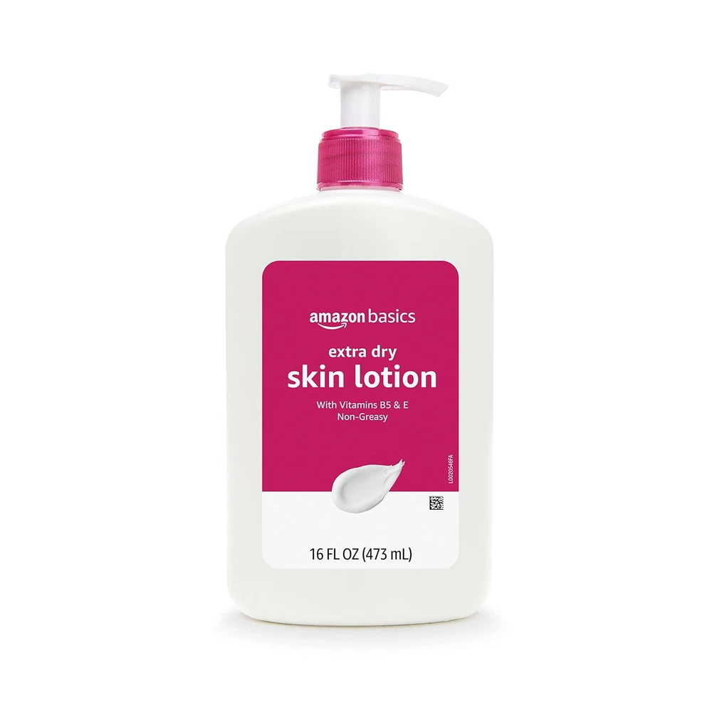 One 16-fluid ounce pump bottle of body lotion to help soothe and protect extra dry skin Non-greasy, paraben free formula with vitamins B5 and E Not tested on animals. Made in the U.S.A. with U.S. and foreign components If you like Lubriderm Advanced Therapy Lotion, we invite you to try Amazon Basics Extra Dry Skin Lotion Packaging may vary from images shown Amazon Basics Extra-Dry Skin Lotion with Vitamins B5 and E is a creamy, non-greasy, moisturizing body lotion that helps soothe and protect normal to very dry skin types.