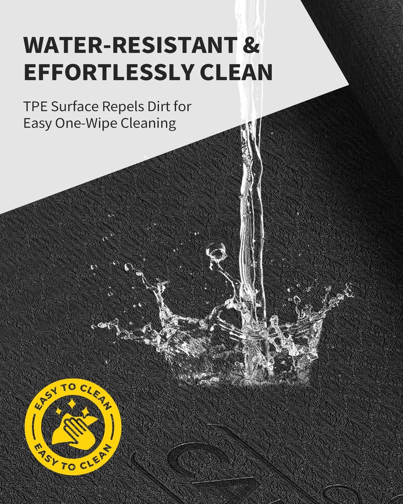 Fitness Without Restriction: Extra length and width(72"x 48"), You will never feel restricted or limited by the size of this fitness mat; Extra-large space allows you to do any Yoga Poses, Pilates, Stretch, Foam Rolling, Cardio Workouts, Meditations and various barefoot bodyweight training like Squats, Lunges, Push-ups, Plank Variations, and Calisthenics Grippy Not Slippy: Our Yoga Mat using a Two-toned Textured non-slip design so you can perform any movement with confidence; Wavy underside stops the mat from sliding on the floor; The laser graved surface prevents hands and feet from slipping out of position so you can hold poses no matter how vigorous your practice gets and whether you¡¯re practicing on a wood floor, or tile ( Not recommended for use on a rug) Optimize Workout Performance: The extra thick yoga mat and the textured surface stabilizes your body, relieves pressure points in all yoga postures, aids in balance to hold postures longer, and protect your joints and knees without compromising support or stability; Great for beginners, pros and yoga trainers, fitness exercises or rehabilitative purpose Versatile and Convenient: This fitness yoga mat is designed very lightweight and comes with storage straps that allows you to take it with you at work, at the gym, camping, and much more; Great for yoga, sit-ups, push-ups, aerobic exercises, outdoor camping, and much more; Roll it for convenient storage after use; A must-have for every yoga enthusiast Yoga mat of 2 versions logo will be sent RANDOMLY; Package Include: Large yoga mat, a microfiber towel, two mat straps; Note: We recommend that you use our yoga mat barefoot or with yoga socks, but do not wear shoes, because the shoes are rather hard on the material of yoga mats and can tear the mat