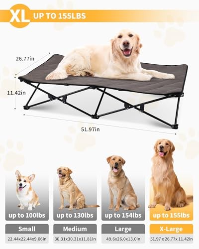 Extra-Large Elevated Cooling Dog Bed – 52"L x 27"W x 11"H – Outdoor Raised Cot for Big Dogs