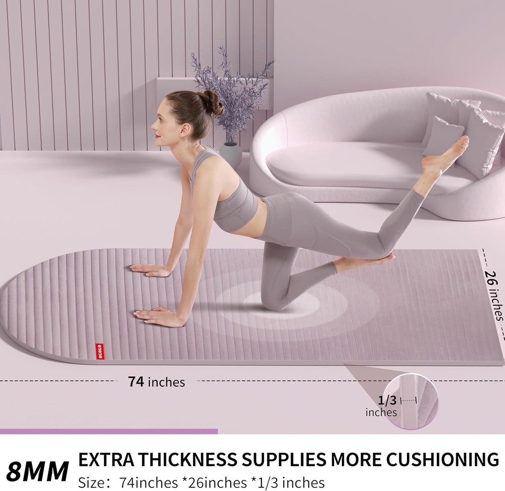 This yoga mat is a game-changer! The extra length and width give plenty of room to move, and the suede finish feels soft yet grippy. The POE material is super durable—no slipping or bunching, even during intense workouts. The cushioning is just right, supportive without being too thick. Perfect for yoga, Pilates, or any floor exercise. Love the stylish stripes too! Highly recommend for anyone wanting comfort and quality.