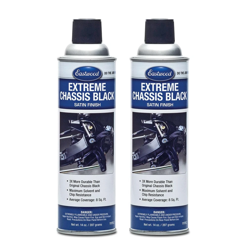 For enthusiasts that drive to the extreme or have a particularly challenging restoration ahead, this heavy-duty car frame paint is up to the challenge. Extreme Chassis Black Paint is a proprietary coating that can renew and maintain the look of the undercarriage. Once you’ve stripped away surface paint and rust, apply a coat of Extreme Chassis Black Primer followed by this durable coating. It has three times the resins of our original Chassis Black for three times the protection against corrosion, scratches or chemical fading. The low-gloss satin finish is a match for many OEM underbody paints. Note: This paint can not be applied over top of self-etching primers. Extreme Chassis Black Satin Aerosol Improves Corrosion Resistant Helps Seal Rust and Improves Resistance Against Chips and Scratches Matches OEM Automotive Paint Apply Multiple Coats Without Lifting Satin Finish 25-35% gloss