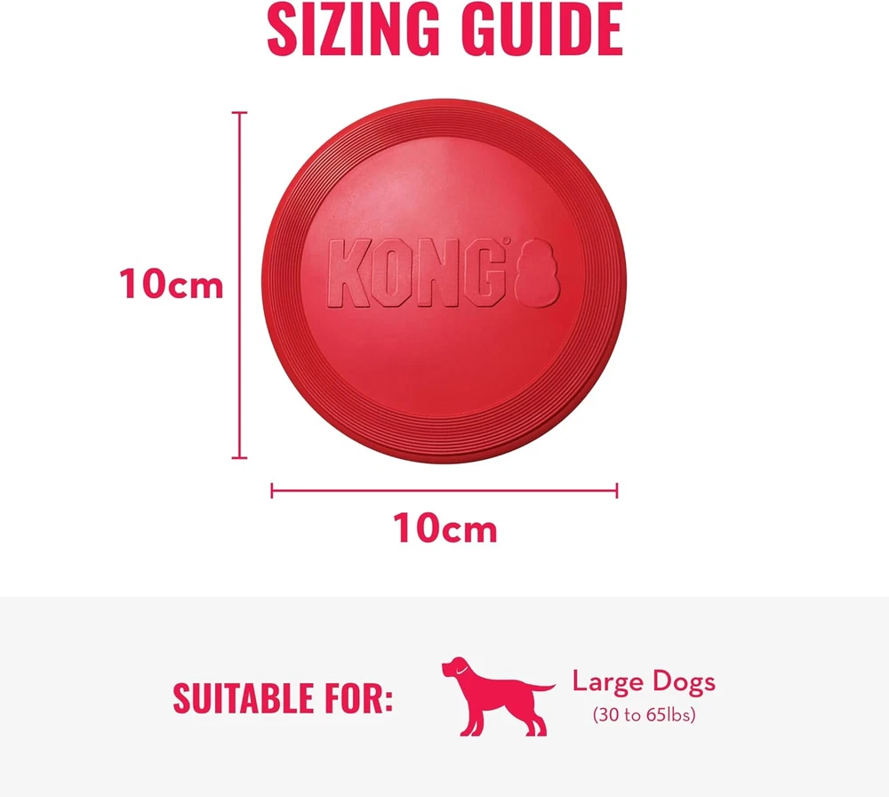 Durable Dog Disc: This flying disc dog toy is made of KONG Extreme Rubber for a forgiving and dynamic catch that will keep your dog entertained Dog Toy for Fetch: Durable dog disc designed for fetching and outdoor play; toy delivers a high-energy rebound for exciting play Flying Disc Dog Toy: The KONG Extreme Flyer is a soft disc that allows gentle rebound, making it perfect for playtime; not a chew toy Dog Exercise Aid: The dog disc promotes healthy exercise and fulfills your dog's instinctual need to play, allowing you to bond with your pet Made in the USA. Globally sourced materials. KONG has been innovating since 1976 to enrich the lives of pets with the highest quality pet toys and treats. Covered by KONG's Satisfaction Guarantee KONG Extreme Flyer is made for fetching. It is made of durable KONG Extreme rubber which allows for a forgiving catch, plus the material delivers a dynamic rebound just in case your dog misses the initial toss. Let your dog’s love of fetch take flight with a safer disc that delivers tons of healthy activity. Covered by KONG Satisfaction Guarantee. See KONG Satisfaction Guarantee document below for full details.
