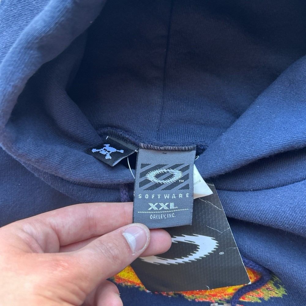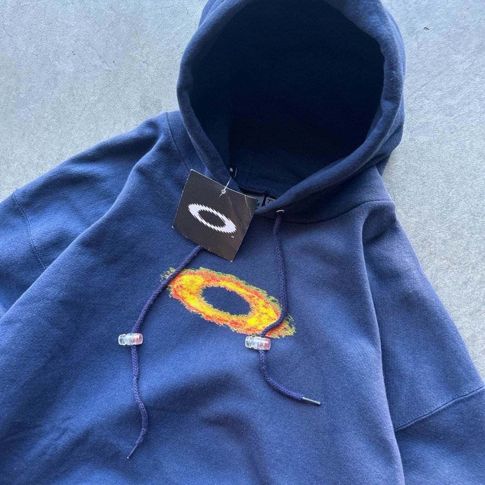 The Oakley Software Flame Hoodie in XXL FITS BETTER AS AN XL size is a rare and vintage piece perfect for men who appreciate outdoor, 90s, and sports themes. This pullover hoodie features a vibrant orange color with a graphic print, making it a stylish choice for activities like gym training, walking, and skateboarding. The hoodie is equipped with a hood and pockets, adding practicality to its trendy design, and is sure to make a statement for those looking to stand out from the crowd.