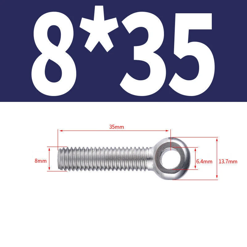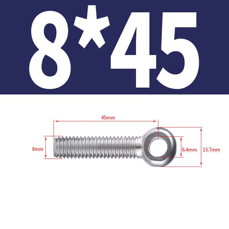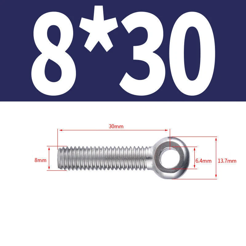 Material: A2 (304) stainless steel Product specification: M5 M6 M8 M10 M12 M14 M16 M18 M20 M24 Length: 20mm-200mm。 Standard:DIN444。