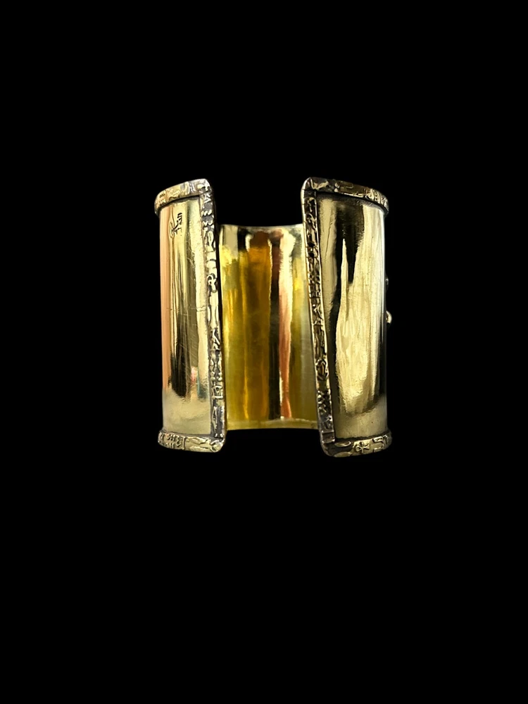 Discover the mystique of ancient Egypt with this exquisite Eye of Horus cuff bracelet. Crafted with meticulous attention to detail, it features the iconic Eye of Horus / Eye of RA design, known for its protective and healing properties. The combination of rich historical significance and timeless style makes this bracelet a truly special piece. Adorned with a main stone that complements the gold hue of the brass material, the bracelet exudes an air of sophistication and artistry. It is a versatile accessory that suits various occasions, from casual gatherings to more formal celebrations. This piece is fully customizable to fit your unique preferences and is an ideal choice for those who appreciate the beauty and culture of ancient Egypt.