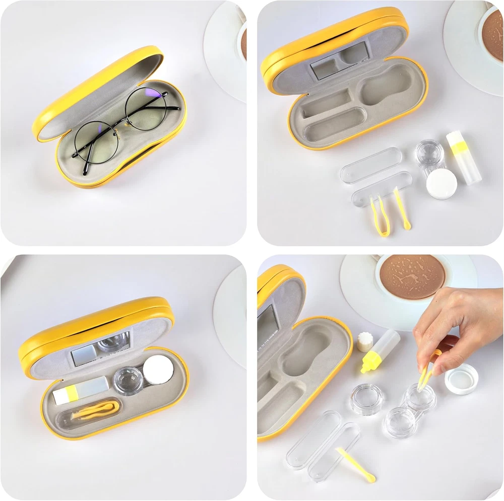Eyeglass Case Double Sided Portable Contact Lens Box 2 in 1 Multifunction with T