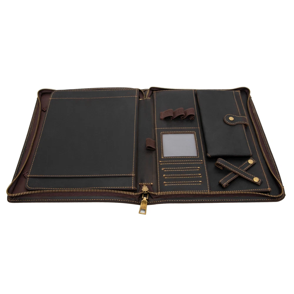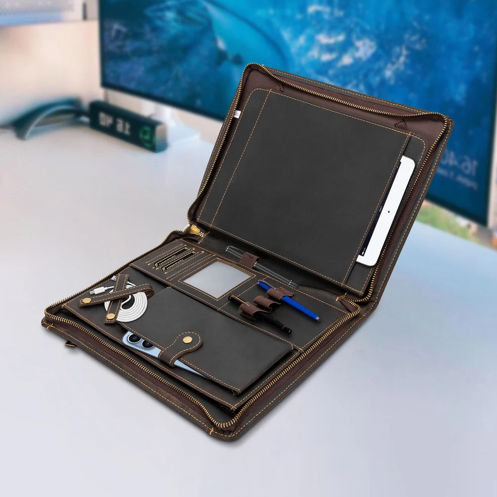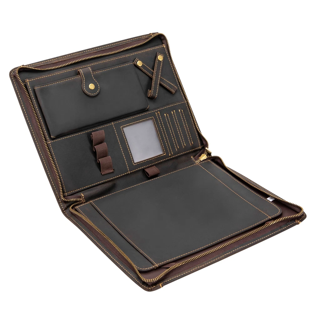 welcome Description Meetings, interviews, or classroom presentations require a lot of preparation, so we need a practical bag to organize objects. This product provides you with a great choice. Made of top-layer cowhide leather, it is very durable. And multiple compartments can facilitate the classified storage of office files, mobile phones, pens, data cables, and more. It not only makes you more confident but also gives others a good impression. Key Features Preferred Material: Made of top-layer cowhide leather, it has high toughness, good air permeability, and is comfortable to touch, allowing you to use it for a long time. Due to the natural property of leather, the appearance may change to a more mature and aged look.This aging of the leather not only makes it more flexible but also strengthens the material. You can slowly enjoy the change of texture! A Good Assistant: It can organize letters, notebooks, important documents, paper, printouts, flyers, commercial credit cards, photos, etc, and protect precious electronic products from collisions and scratches. Sorted Storage: A tablet holder with four elastic bands can accommodate 9.7-inch tablets/laptops and provide excellent fixation. Two large pockets can be used to store receipts, checkbooks, tickets, or passports. Four highly elastic pen slots can accommodate various sizes of pens, pencils, and markers. A phone bag with a buckle can be used to store your phone. The headphone holder can be used to store headphones, USB cables, and charging cables. And four card holders can store your business cards, ID cards, or credit cards. High-end Appearance: The natural texture of leather, classic brown, metal zippers, and rounded edges make the product look simple but luxurious, which can showcase your extraordinary fashion taste. Portable: It is lightweight (1.4 lbs), compact ( 11.41*0.87*1.57 inches ), and can be conveniently placed in a suitcase or briefcase, making it an excellent companion for business travel. It can also serve as a substitute for a briefcase, laptop bag, and backpack. Ideal Gift Choice: Good practicality makes it an ideal gift for colleagues, friends, or recent college graduates on Father's Day, Mother's Day, birthdays, Valentine's Day, Christmas, and other occasions. Exquisite Workmanship: Fine and neat stitching can make the product look more exquisite and extend its service life. Guaranteed Customer Service: We aim to provide quality products and services. If you have problems, please feel free to contact us. We will reply and solve the problem for you as soon as possible. Details Durable Zippers: The high-quality alloy zippers are wear-resistant, corrosion-resistant, waterproof , and can resist impact, deformation, and fracture, which can extend the service life of the product. And you can zip up the product to prevent losing items. Clear Card Window: The clear card window made of plastic cement allows you to easily see the cards inside for easy access. Application It is suitable for students or professionals to store office supplies for presentations, meetings, interviews, or daily management tasks. Specification Style Modern Color Brown Material Cowhide Leather, Alloy, Plastic Cement Shape Rectangular Compatible Devices 24cm/9.7inch Tablets/Laptops Net Weight 0.67kg/1.4lbs Gross Weight 0.8kg/1.7lbs Package Size 31*25*4cm/12*9*1.5inch Product Size 29.5*23*4cm/11.41*0.87*1.57inch Package Included 1* Leather Padfolio Folder Notes Please avoid immersing the product in water or exposing it to water for extended periods. Please avoid using sharp objects to rub the product. The top-layer cowhide has a natural texture and is prone to wrinkles, marks, spots, and creases, which is a normal phenomenon. You can repeatedly rub with your fingers, and use a dry cloth, sponge, hand cream, or leather care oil to make scratches fade or disappear. Please confirm the size of the tablet or laptop before ordering. If unsure, please measure it in time. Please allow the slight color difference caused by the shooting light and 1-3cm error due to manual measurement, and make sure you do not mind before ordering. Payment Delivery details Terms of sales About us Contact us Payment We accept ebay payment 。 Fees such as import duties, taxes are not included in the item price or shipping costs. These charges are the buyer's responsibility. Delivery details Shipping: 2-9 working days to: USA Terms of sales We maintain high standards of excellence and strive for hundred percent customer satisfaction. Feedback is very important to us. We hope that you contact us immediately before you give neutral or negative feedback, so that we can address your concerns. It is impossible to address issues if we do not know about them! About us Your satis faction is our ultimate goal. We work hard to earn your trust and future business. Our certified technicians have tested each item before shipping. The unit comes with 1 year limited warranty on all manufacturing defects. a) If you receive a defective item, you may return it or ask for a discount. Please contact us within 14 days after you receive the package. b) What you returned must be intact and in its original packaging as re? u. Customer is responsible for shipping costs of the returned item. c) We will cover the cost of shipping back t with the shipping rate indicated in the registration page. We will send you a new unit or refund the full payment you paid. Thank you. Contact us Business Hour Business Hour: Monday To Friday: 8:30 AM to 5:00 PM (Beijing China time) Due to time zones, our reply to your questions may not be immediately. But within above working time, we will reply your email within 24 hours. If it's non-workdays, please kindly be patient and wait till Monday. Please contact us with ebay message. Please feel free to contact us if you have any questions. Monday To Friday: 8:30 AM to 5:00 PM (Beijing China time) Due to time zones, our reply to your questions may not be immediately. But withi