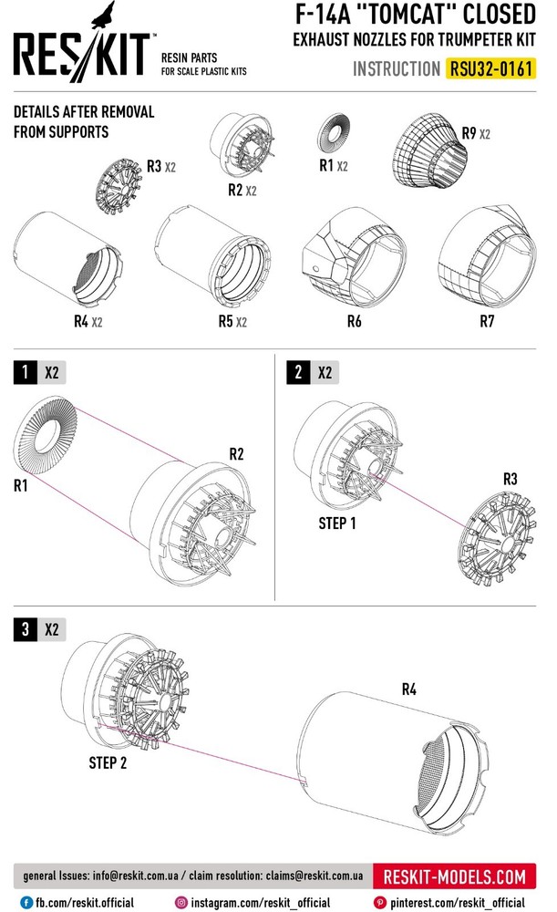 Grumman F-14A Tomcat close Exhaust Nozzles for Trumpeter kit (3D Printed) Scale 1:32 ResKit RSU32-0161 for Aircraft Model Kit Premium Resin & 3D-Printed Upgrade for Scale Plastic Model Kits Take your scale model builds to new heights with this detailed set from ResKitβa trusted name in professional-grade accessories for plastic model kits . Scale: 1:32 Manufacturer: RESKIT (Accessories for Scale Plastic Kits) Model (SKU): RSU32-0161 Country/Region of Manufacture: Ukraine Condition: New in Box π¬ Need more stock? Weβve got you! Message us to customize your order quantity . As direct partners with manufacturers, we restock fast to meet your needs. π― Rapid replies assured! Available all day, with only time zones causing minor delays. π π Order Transparency We're here to help and will keep you informed on your order status. π Product Specifications Material: Resin / 3D Printed Features: Kit Kit description: Unpainted, Unassembled, Kit do not contain paints and glue Category: Resin & 3D accessories Type of equipment: Aircraft Type of product: Exhaust Nozzles Recommended kit: Trumpeter Country of origin: USA Skill level: Advanced Type aircraft or vehicle: Grumman F-14 Tomcat ResKit is your reliable partner in the world of modeling, Enhance your projects with our accessories and parts that will take your hobby to the next level! π Why Choose ResKit? β¨ Exceptional Precision: Each component is designed to replicate the real aircraft parts with maximum fidelity. β¨ 3D & Resin Excellence: Combines cutting-edge 3D printing with traditional resin casting for superior quality. β¨ Perfect Compatibility: Seamless fit with major plastic kit brands. β¨ Expansive Range: Explore upgrades for aircraft, helicopters, vehicles & more in multiple scales. About the Reskit Brand ResKit β Premium Upgrade Parts for Scale Model Kits Enhance your model builds with ResKit β top-tier resin and 3D-printed accessories for scale plastic kits in 1:32, 1:35, 1:48, 1:72 & 1:144. Our product line includes aircraft wheels, landing gear, pylons, engines, nozzles, cockpits & weapons. Designed for realism, precision, and easy fit β perfect for aviation and military modeling enthusiasts. π But Wait, There's More! π Visit Our Full Store β Shop Now π§© See UPGRADE ACCESSORIES Products β Browse Collection βοΈ See All ResKit Products β Browse Collection π Take Your Scale Modeling to the Next Level! Step into the extraordinary world of scale modeling with our premium selection of scale model accessories , crafting supplies, and tools. Whether you're a seasoned modeler or just starting, we offer everything you need to create lifelike replicas of automobiles, aircraft, ships, and trains. Elevate your projects with: π¨ Miniature Components for added realism. π οΈ Precision Tools to craft every detail flawlessly. π‘ Supplies designed to unleash your creativity. Let your imagination soar with the best in scale model craftsmanship! π Customer Support: Fast response times Friendly service & custom order assistance Need multiple items? Message us β we can adjust quantity or restock quickly! π About Us ποΈ We provide a wide selection of 100% brand-new products at competitive prices βdirect from manufacturers to you. π¬ Need help? We're always here to assist you! βοΈ Enjoy a simple, secure, and worry-free shopping experience. π³ Payment π΅ All eBay payment methods accepted, giving you convenience and flexibility. π‘οΈ Transactions are protected by eBayβs Buyer Protection Program for your peace of mind. π Shipping Details βοΈ Fast & Reliable Shipping : Orders are shipped via trusted airmail services and delivered by your national postal service. π¦ Tracking Included : Monitor your package every step of the way. Shipping from Ukraine . Estimated delivery: 10β25 days . Handling time: 1β5 business days . π Shipping Discounts π° Save more with combined shipping discounts ! 50% off shipping for each additional item. π§ Request an invoice before payment for an updated total. π Hassle-Free Returns π Not satisfied? No worries! β Refunds issued promptly upon receipt of the item in its original condition. π― Shop with confidence and craft your perfect models today!
