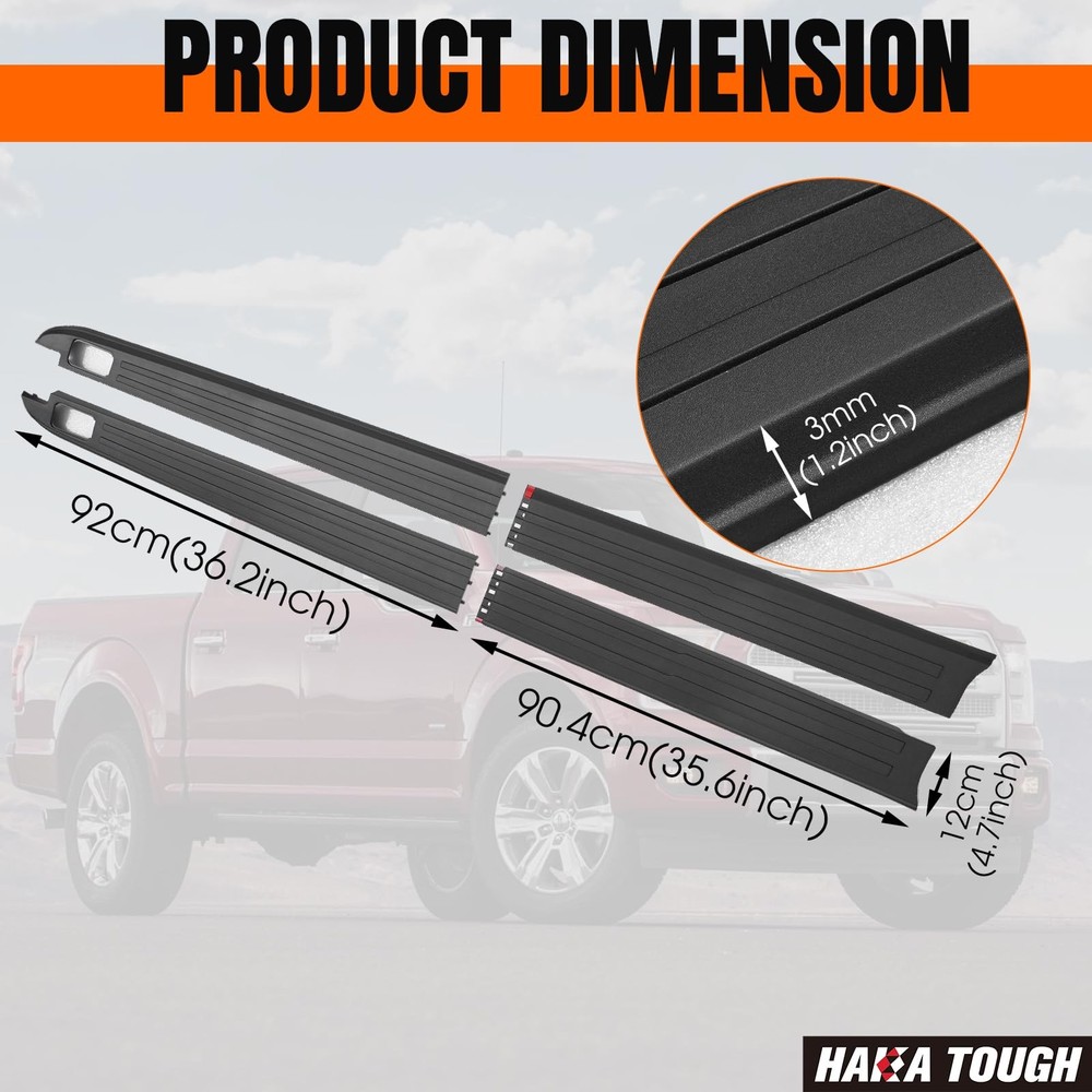 Fitment: for 2015-2020 F-ord F150 Perfect Fit: trunk bed rail caps are designed for F-ord F150 with 5'5" Bed 2015-2020. These bed rail covers come with Stake Holes.Replacement #FL3Z-84291A40-AA, #FL3Z-84291A41-AA Durable & Robust Material: Constructed from thickened high-quality PP plastic, our bed rail covers for F150 offer superior wear resistance, high hardness, ensuring they remain intact against cracking, deformation, and weather elements. Sleek Aesthetics: Featuring a smooth, black matte texture that resists scratches and dust, these bed rail caps for F-ord F150 enhance your truck’s appearance by replacing old, damaged, or worn-out factory side rails, blending aesthetics with functionality. Enhanced Protection: Guard the edges of your truck bed against impacts and scrapes with these sturdy trunk side rail caps for F-150. Their robust design not only protects but also gives your F150 a polished, new look, making it stand out. Effortless Installation: Engineered for a factory-tight fit, bed rail protectors perfectly align with your vehicle's dimensions to ensure a seamless fit without gaps, without any need for drilling or modifications.
