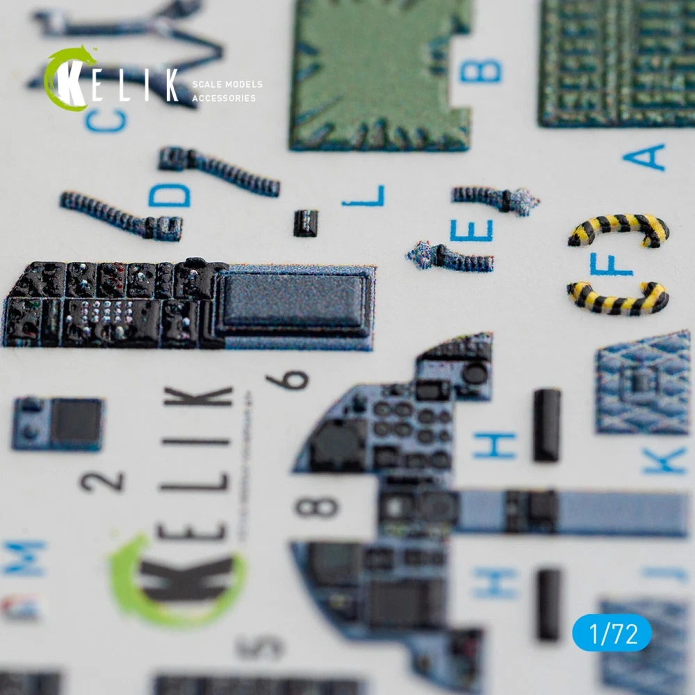 F-15C Strike Eagle interior 3D decals for Hasegawa kit Scale 1:72 KeliK K72072 - For Plastic Model Kit High quality, easy to apply, add realism and detail to your model. Scale: 1:72 Manufacturer: KeliK (Ukraine) Country/Region of Manufacture: Ukraine Condition: New in Box Features: Kit Category: 3D Decals Type of equipment: Aircraft Recommended kit: Hasegawa kit (F-15C STRIKE EAGLE) ---------------------------- Scale model accessories are a wide range of parts, spares, and components that can help you make your model even more realistic and detailed. In our catalog, you will find everything you need to assemble and repair model cars, airplanes, ships, tanks, and weapons. Our accessories are made from high-quality materials and meet all standards. We offer a wide range of models and sizes so you can find what you need. Buy scale model accessories in our store and make your model even more unique!