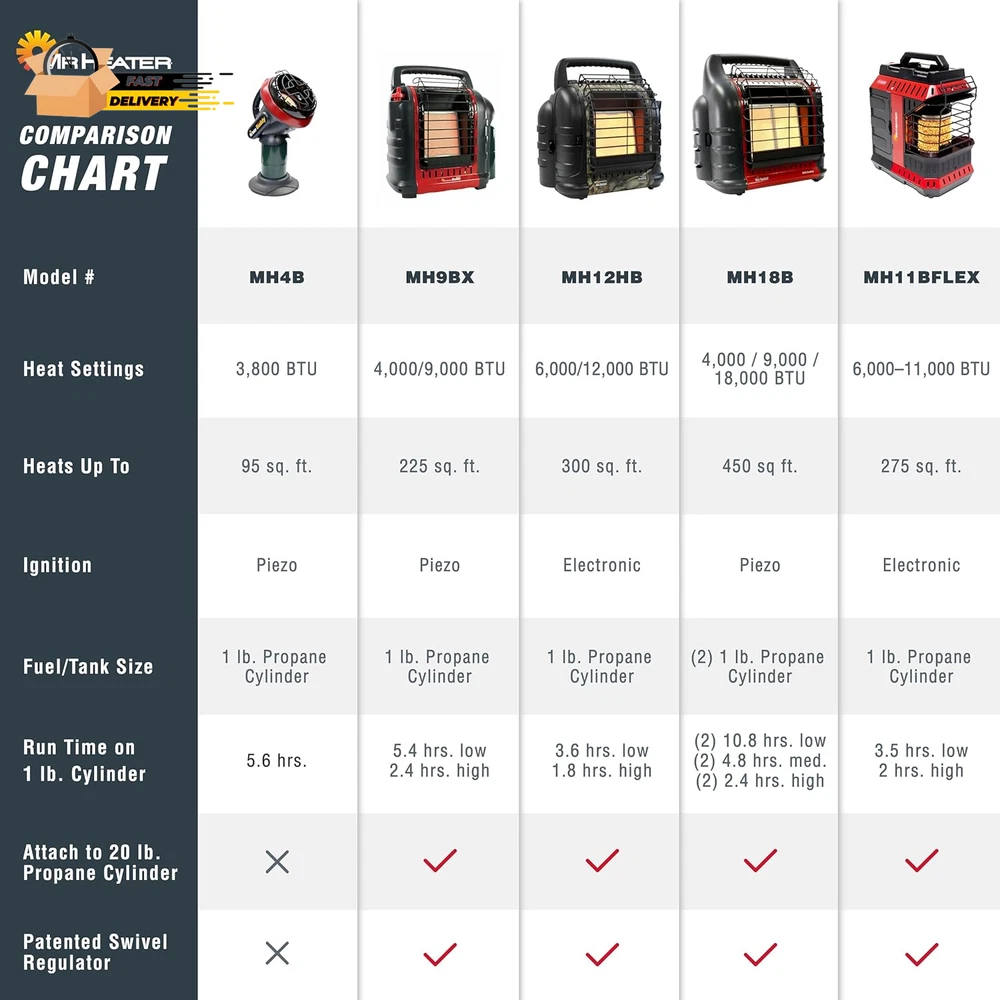 Store New Arrivals Add to Favorite View Feedback Contact F215100 MH4B Little Buddy 3800-BTU, Indoor Safe Propane Heater with ODS & Tip-O Description Item model number F215100 Warranty Description Warranty Assembly required No Country of Origin USA Fuel Type Propane Department Unisex-Adult Import Made in the USA Power Source propane Heating Method Radiant Room Type Home Office, Study Room Item Weight 1 Pounds Heat Output 3800 British Thermal Units Batteries required No Product Dimensions 11"D x 10"W x 12"H Care instructions See product manual Burner type Radiant Heating Coverage 95 sq. ft. Is Discontinued By Manufacturer No Indoor/Outdoor Usage Outdoor, Indoor Number of Speeds 1 Item Weight 1 pounds Special Feature Portable, Low-Oxygen Safety Shutoff, Lightweight, Tip-Over Protection Mounting Type Floor Mount Color Black/Red Form Factor Cabinet Cable Length 45 Feet Global Trade Identification Number 00089301151000 Voltage 110 Volts Recommended Uses For Product Outdoor Heating, Indoor Included Components F215100 MH4B Little Buddy 3800-BTU Indoor Safe Propane Heater, Medium , Black/Red Style Name Heater Number of pieces 1 Indoor-safe portable propane heater for rooms up to 95 square feet. THIS UNIT IS NOT INTENDED FOR GOLF CART USE OR FOR MOTORIZED VEHICLES. Continuous odor-free, 45-degree heating angle. Maximum Elevation (Ft) 7000 Feet. Automatic low oxygen shut-off system (ODS). Perfect solution for heating small enclosed spaces like tents up to 95 square feet Simple on/off buttons; uses 1-pound disposable propane cylinder (not included). Run time at minimum btu and maximum btu is 5.6 hours. Do not operate heater in any moving vehicle. This heater requires a vent area of 4 square inches minimum for adequate ventilation during operation Low-oxygen sensor and accidental tip-over switch with auto shut-off for safety.THE USE OF UN-AUTHORIZED ACCESSORIES/ATTACHMENTS WITH THIS HEATER ARE EXPRESSLY PROHIBITED, MAY CAUSE SERIOUS INJURY, AND WILL VOID THE WARRANTY. Recommended for emergency heat, tents, campers, workshops, job sites, porches, patios, decks, garages, storage buildings, picnics, tailgate parties, construction trailers, sporting events, barns, sheds, hunting blinds, shelters and ice fishing shanties Mr. Heater F215100 MH4B Little Buddy 3800-BTU Indoor Safe Propane Heater, Medium , Black/Red ABOUT US We offer the best prices around on high quality products. Our E-store includes media such as books, movies, music and games while offering electronics, toys, sporting apparel, clothing, tools, general home, garden items and more. SHIPPING We are always working hard to ensure your package arrives as soon as possible. Please understand that some factors like weather, high postal traffic, and the performance of shipping companies are outside of our control. We offer free shipping to the lower 48 states and ship within 2 business days of payment, usually sooner. We do not accept P.O. Boxes. Please provide a physical address. For shipping outside of the continental USA, we only use eBay's Global Shipping Program.The item is shipped to KY and then sent to the rest of the world. International customers are responsible for all duties and taxes. Continue to check out in order to calculate costs for shipping the item to your country. Messages regarding eBay's Global Shipping Program MUST be directed at eBay EXCLUSIVELY. RETURNS We offer a 30-Day Return Policy on items which you are not completely satisfied with. You have the option for a full-refund or an exchange of the item. No returns are available on items shipped outside of the USA. PAYMENT We accept PayPal. CONTACT US This page content is yet to come Please ad us to your favorite seller and visit again later Thank You CUSTOMER SATISFACTION We try our very best to make sure every customer is completely satisfied. If there's a problem, message us! We're happy to help. WE ACCEPT Copyright © 2021 AutoDS. | All Rights Reserved
