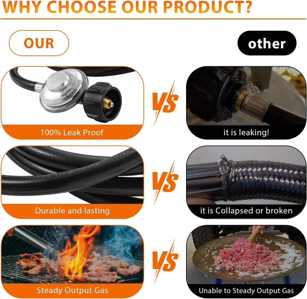 Propane Hose Compatible with Mr Buddy Heater Hose:The buddy heater hose assembly for use with Mr Heater f271803 Buddy adapter hose,for F274830 Big Buddy indoor/outdoor heater. POL is attached directly to a 5-20 pound propane tank. 12 ft. buddy-series hose assembly connects appliances that are designed to be connected to a 1 to 20 lb propane tank, Type 1 Connection x Quick Connect Fittings Ideal Replacement for Mr Heater Buddy Hose: When you don't want to use a 1 pound tank gas cylinder and save money, Our replacement for Mr Heater Buddy hose will be your best choice. 12 feet propane tank adapter hose can be used for heaters and more propane equipment. High Quality-Material:Our replacement for Mr Heater Buddy hose adapter accessories is made of high quality rubber and the connector section is made of solid brass for excellent firm connection and durability, ensuring safe and leak-free operation. for Mr Buddy heater hose to propane tank length is long enough to keep the propane tanks at a safe distance. Easy to Install :The propane adapter hose for Buddy Heater is directly connected to the propane tank and can be connected to the propane tank without tools. The portable for Buddy Heater hose provides sufficient length and is safe. If you have any questions about our replacement for Mr. Heater Buddy propane heater hose, Please note that we are always here to help. Please contact us.If don't fit for you heater or have other problems, please contact us at the first time, we will solve the problem for you