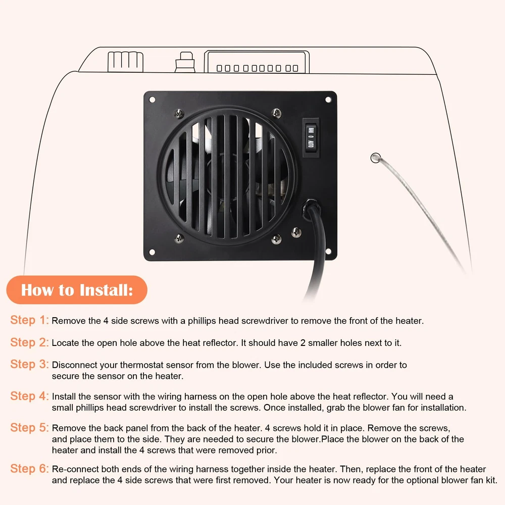 Mr. Heater F299201 Vent-Free Blower Accessory Kits Heating Product Type: Vent Free Heater Controls: Push Button F299201 Blower Fan used for Mr. Heater 20,000-30,000 BTU Vent-Free Heaters for models 2016 to present. Mr Heater F299201 Vent Free Blower Fan Kit Instruction Manual Step 1: Remove Heater From Installation Location. Step 2: Removal of the knock-out plate (installation panel) on the rear of the heater. Step 3: Making the electrical connections. Step 4:Completing blower installation. Step 5: Fan Switch operation. ►F299201 Blower Fan used for Mr. Heater 20,000-30,000 BTU Vent-Free Heaters for models 2016 to present. Fits NTE Item#s 52563, 52564, 52569, 52570, 52558, 52559, 52561, 52562, 255839 and 255639. ►SPECIFICATIONS - Length x Width x Height: 5 3/8'' x 5 3/16'' x 6 1/8'', The spacing of screw holes is 4 7/8'' x 5 1/2'', Power Cord Length: 54", ★Wattage: (W)18, Amperage: (amp)0.02, Delivers 18.5 CFM, Heating Product Type: Vent Free, Heater Controls: Push Button. Easy to install. ►QUIET DOWN YOUR WINTER - Mr. heater F299201 vent-free blower quietly circulates the warm air throughout the room. Built with convenience and functionality in mind, it will help create the ideal temperature and maintain optimal climate at any job site or in your garage, taking your productivity and comfort to the next level. ►FAN SWITCH OPERATION - Installed switch installed on the blower is a three-position switch. Depressing the top of the switch will place the blower into Manual mode. This will turn the fan on and it will stay that way until the operator moves the switch to off, which is the middle position or down, the auto position. When in the auto position, auto will cycle the blower on as the heater heats up and then off when the unit has cooled. ►PERFECT SUPPLEMENTAL HEATING SOLUTION - This mr. heater f299201 blower fan kit for mr heater is conveniently equipped with a thermostat for superior control of the temperature in your space.This unit can heat areas up to 750 sq ft. Multiple burner tiles utilize radiant heat, warming your space with the power of the sun.