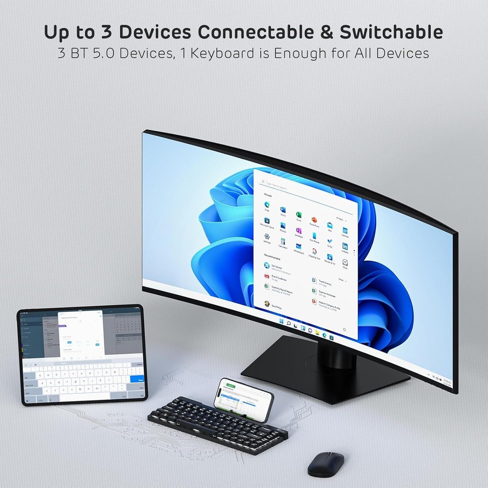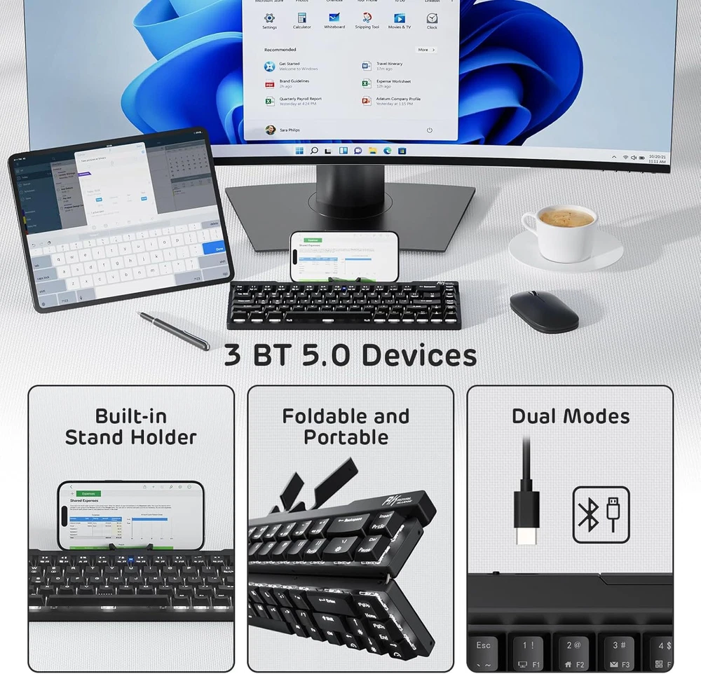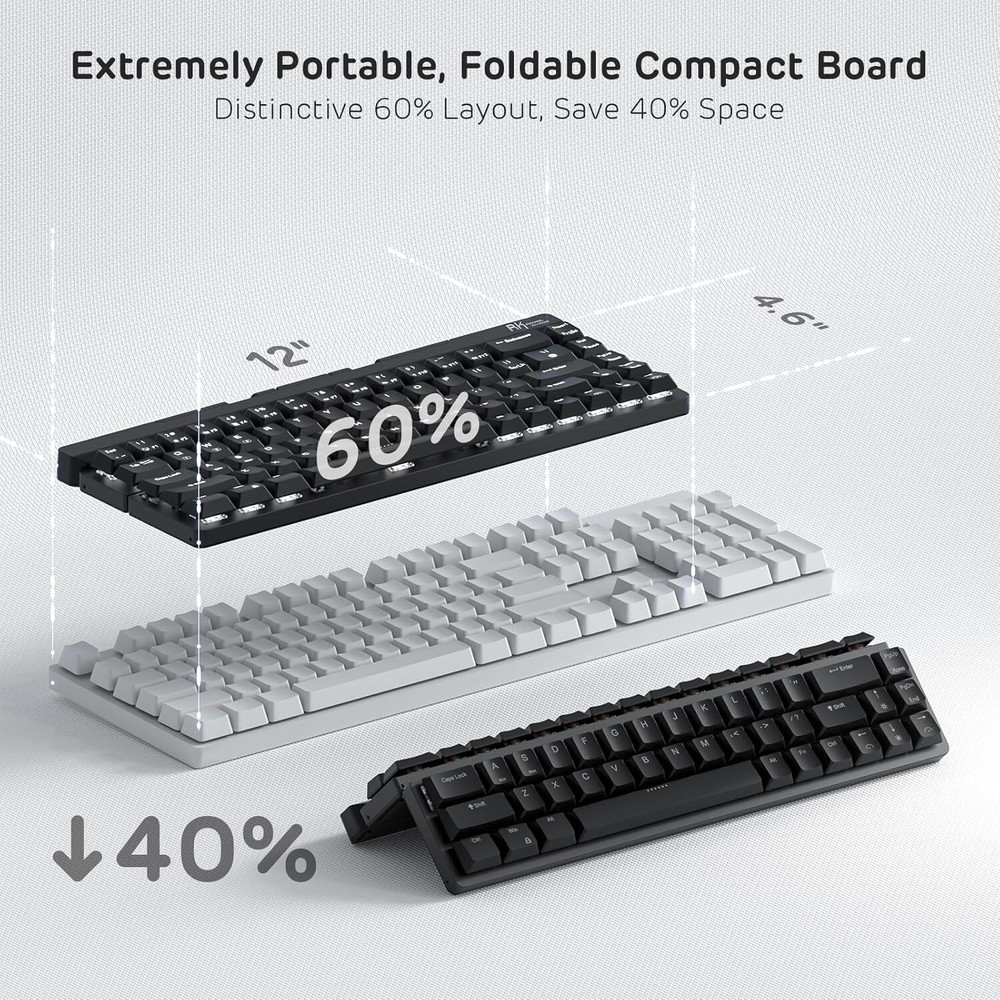 Product Description F68 60% Foldable Low Profile Mechanical Keyboard, Wireless Mechanical Keyboard with Aluminum Body, Built-in Stand Holder, White Backlit, 68 Keys Foldable Mechanical Keyboard 60 percent - Believe it or not, this is the first generation of foldable BT keyboard with mechanical switches on the market. Reinforced But Thin Aluminum Body - Makes the keyboard more stable and textured, thanks to the metal case. Built-in Stand Holder - Conveniently adjusts to provide the perfect screen angle for iPads, tablets, and phones. Plus, the holder can magnetically attach to the foldable keyboard. Low Profile Keyboard - Offering the speed and accuracy of mechanical red switches at only half the height. The portable keyboard with red switches features a quiet and linear typing experience, providing effortless and smoother typing with soft, top-to-bottom feedback. Wireless/Wired Mode - Connects with up to 3 devices via Bluetooth 5.0 Mode. The Compact Wireless Gaming Keyboard also supports wired mode with the included USB Type-A to USB Type-C cable. About Us We are a reputable seller with many years of experience selling on eBay. Our goal is to provide high-quality products and excellent customer service. Shipping Items will be shipped within 1-3 business days when we received payment. (Orders are not processed on weekends & holidays) Tracking information will be sent once item is shipped. Delivery time depends on destination and other factors Item is shipped to ebay address. Leaving correct address can minimize delay. For international shipping and shipping to Guam, Hawaii and Alaska, Please contact us before placing the order. International buyers please note: Import duties, taxes and charges are not included in the item price or shipping charges. These charges are buyer’s responsibility. We will try our best to reduce the risk of the custom duties. Local pick-up is unavailable at the moment. Contact Us We reply any email messages within 1 business / working days(off-duty at weekend). If you do not get a response from us, then please check your junk or spam mailbox. Our Business hours: Mon-Fri 9:00-18:00, UTC/GMT +8 hours. Please contact us either by clicking "contact seller" in the "purchase history" section or simply click "ask a question" at the bottom of this page. If you are unsatisfied with our item or service, please contact us before leaving any feedback. We are committed to resolve all issues in a friendly and satisfactory manner.
