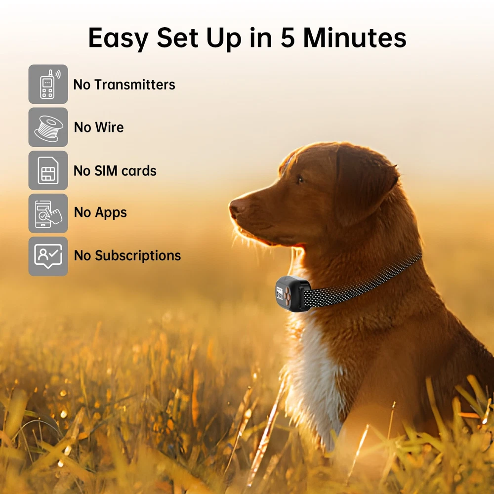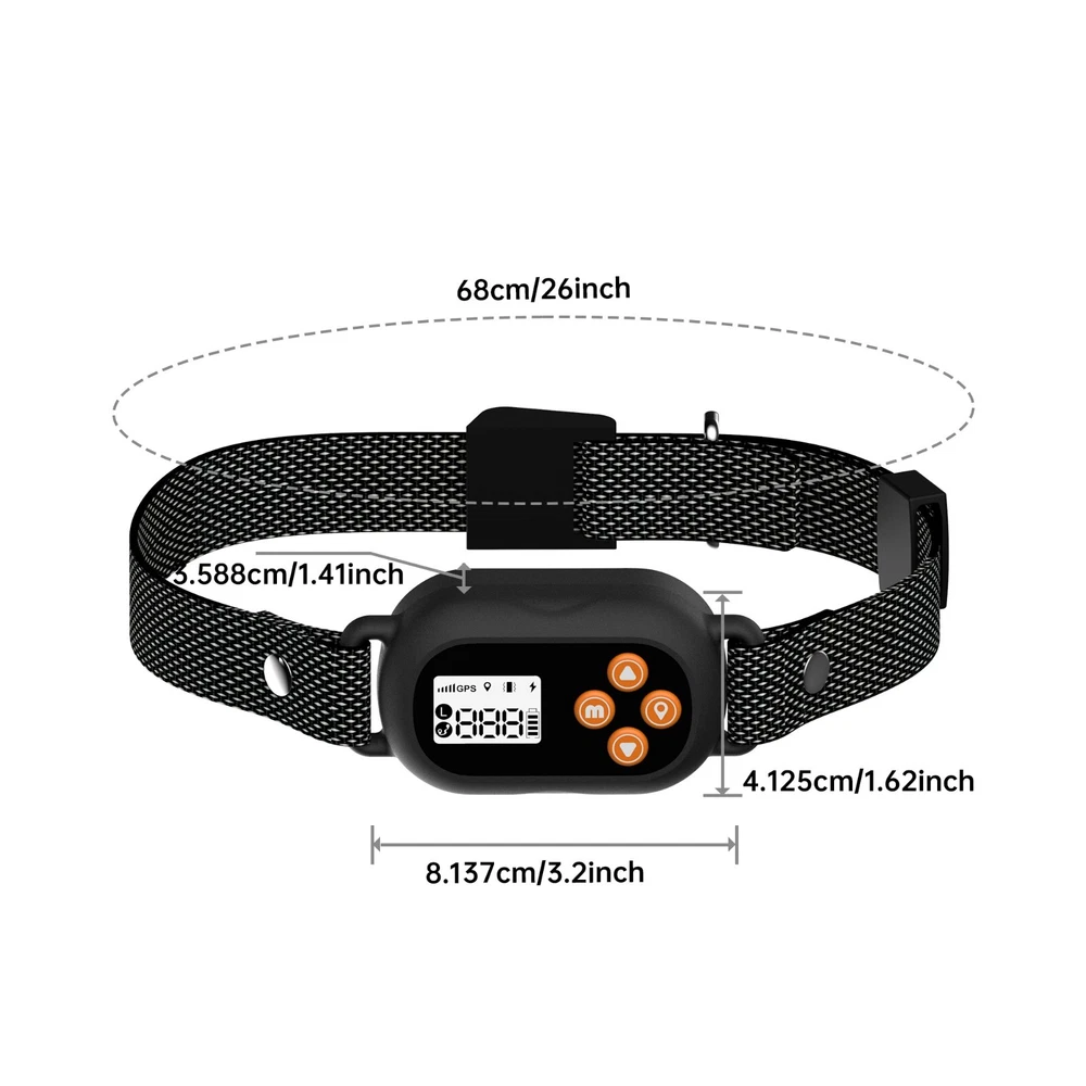 Model F820 improves upon the best-selling F800 model in critical ways: Latest generation GPS computer chip: Offers a stable GPS connection no matter how complex the environment with the ability to connect to multiple satellites at once, ensuring a stable connection whether you are in a dense urban setting or multi-acre property with mixed terrain (i.e. mountains close-by, trees, neighbours, etc). We tested this recently when a buyer based on a 5-acre property in Burpengary, north of Brisbane struggled to maintain a stable connection with the original F800 model but has had no issues at all with the new F820! Shorter Radius for More Domestic Uses: The minimum radius of the new F820 can be set as low as 23-metres from set point whilst the F800 original's minimum is 33-metres. This means more dog owners in smaller properties can benefit from wireless GPS dog fence technology than ever before! 40% Lighter than the Original: The new F820 is only a total of 98g combining collar and belt whilst the original F800 is 158g. This offer more versatility for fitting on small to medium dogs and less strain on your dog's neck overtime. Multiple Software Upgrades: F820 features the latest software upgrade with intelligent scene recognition, weak signal compensation, anti-interference and enhanced automatic dog protection mode. HOW IT WORKS Set up the central starting point for the e-collar and distance to the boundary. Minimum radius is 25 yards (approx 22m) and maximum radius is 999yards (approx 913metres). Install boundary flags a safe distance from the boundary limit. This is where you want the collar to warn your dog about progressing further before static or vibration correction. Choose whether you prefer to use vibration or static correction modes and if you want the collar to automatically increase the intensity level or fix it yourself at a specific level. Spend time training your dog to recognise the boundary flags and what to do when they hear the warning (training guide supplied). PRODUCT HIGHLIGHTS New lightweight design with latest generation GPS chip for best-ever stability in complex environments. New software upgrades for more effective boundary training, enhanced dog protection and more efficient power usage. Create a circular boundary around your property with radius distance from 25-metres (25 yards) to over 900-metres (999 yards). Flexible training with the choice of using vibration or static correction with five levels of automatic correction sequence. Intuitive boundary training correction automatically increases in intensity from levels 1 to 5, depending on the dog's behaviour. IPX7 completely waterproof e-collar allows your dog to take short swims or stay outside in any weather. Large 700mAh rechargeable Li-ion battery plus enhanced signal stability provides power to the collar for up to 48 hours on a single charge. (Note: It is advised to limit your dog wearing the collar to no more than 12 hours per day.) Collars will not interfere with each other if you need to contain more than one dog. PACKAGE INCLUSIONS 1 x Boundary Fence E-collar 2 pairs metal contact points (short and long) with conductive silicone covers Magnetic suction USB charging cable 10pcs yellow flags for boundary training 1x Test Bulb 1x Operating Guide 1x Training Manual. COLLAR SIZING Collar receiver size dimensions: 7cm across x 4cm tall x 3cm thick Belt size range: 23cm to 66cm neck circumference Total weight (collar and belt): 98g Ideal for dogs weighing between 6kg to 60kg.