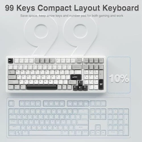 F99 Wireless Mechanical Keyboard with Tri-Mode BT5.0 2.4GHz USB-C in Black Grey White