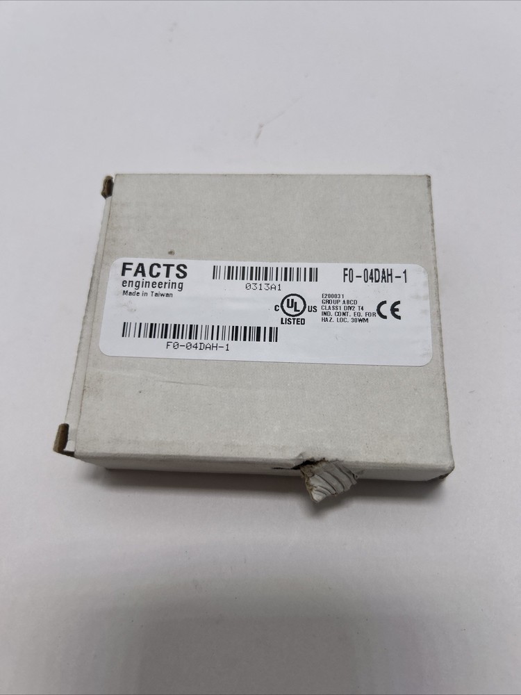 What is pictured is what you’ll receive. A1 The FACTS ENGINEERING F0-04DAH-1 is a new open box PLC processor designed for industrial automation and motion control systems. With the model number F004DAH1, this product offers reliable and efficient performance for various business and industrial applications. The Facts Engineering brand ensures quality and expertise in the field of PLC processors, making this product a valuable addition to any automation system.