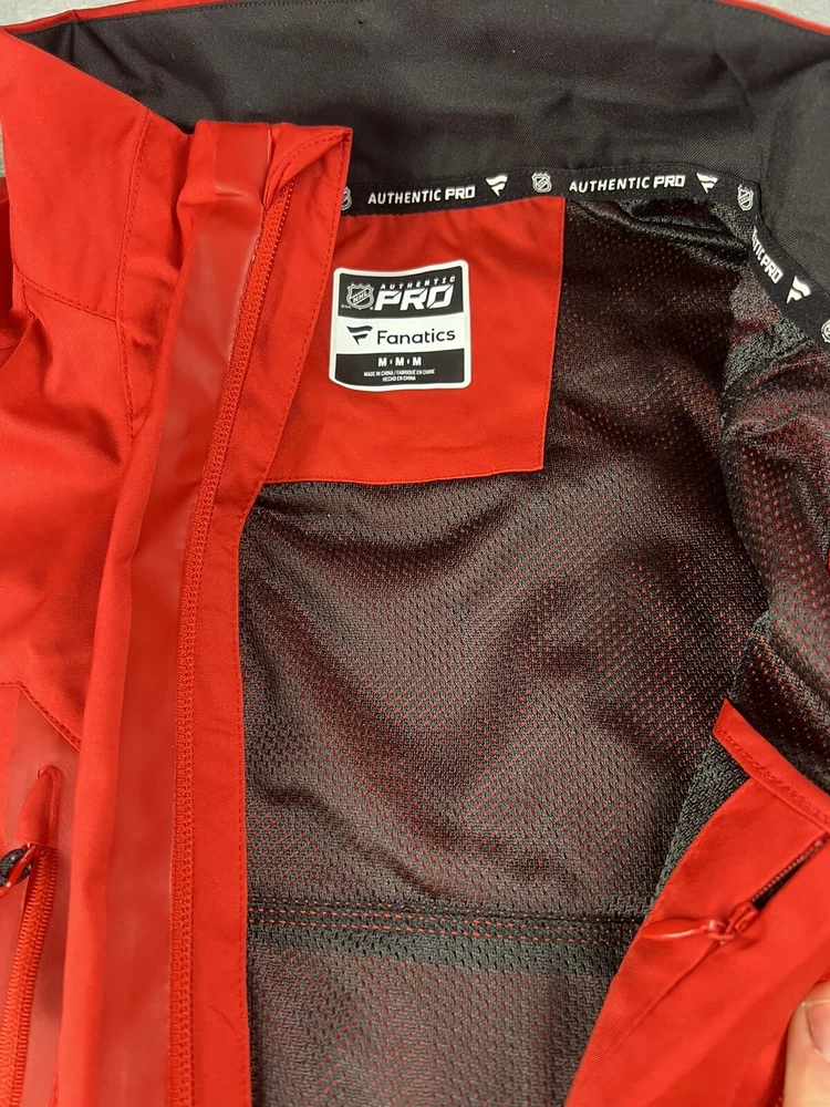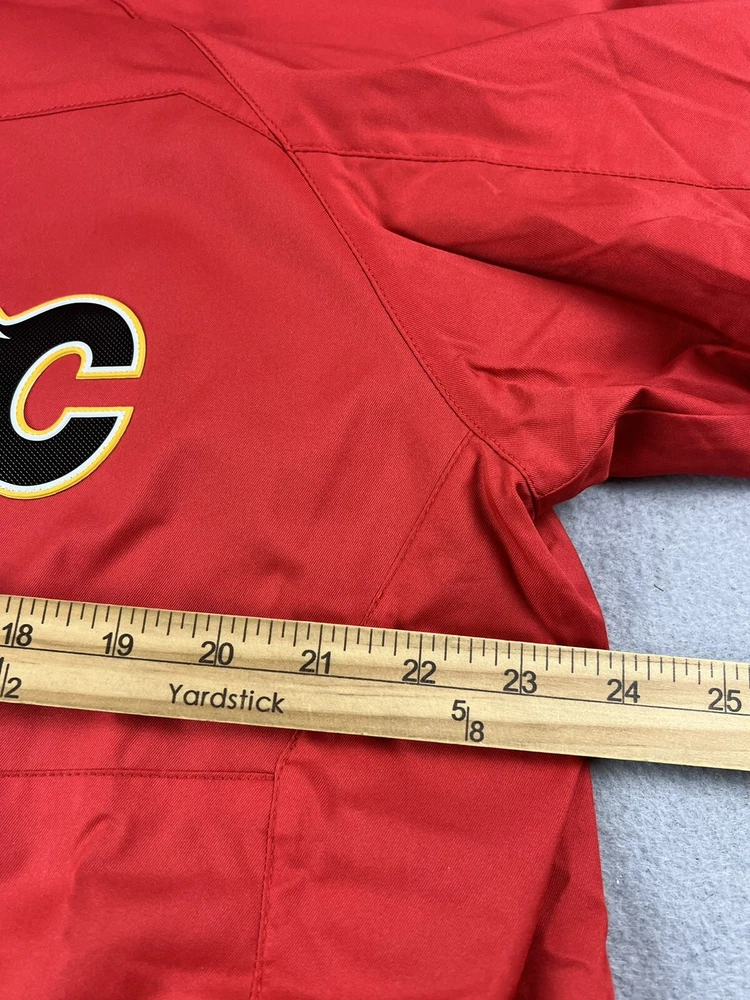 Color:RedOfficially Licensed:YesLeague:National Hockey League (NHL)Size:MGender:MenProduct:JacketBrand:Fanaticsgtin13:Does not applyTeam:Calgary FlamesCountry/Region of Manufacture:IndonesiaUPC:Does not applyPre & Post Season:Regular SeasonSport:Hockey