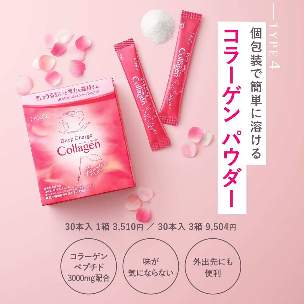 3 boxes FANCL deep Charge Collagen Powder (30sticks) x3= 90days, Description About This Items Brand: FANCL Number of Units: 90.00 Product Form: Powder Product Weight: 0.5 kg Product Dimensions (L x W x H): 14 x 18 x 12 cm Product Features: Moisture, Elasticity Recommended Age: Adult Quantity: 1 Color: Powder Allergy Information: Milk, Gelatin Less Information About This Product [Powder-type collagen that dissolves quickly in drinks and food] Maintains skin moisture and elasticity. Formulated with highly absorbable collagen peptides thanks to FANCL's research. This functional food has been confirmed to function. By caring for the foundation of your skin, you can maintain a moisturized, confident smile. The powder type also contains hyaluronic acid. Individually packaged for easy portability, simply mix it into coffee, yogurt, or other beverages. It's especially popular with collagen masters, providing a solid daily supplement at an affordable price. [Daily intake] 1 bottle / [Functional ingredients / per 3.4g bottle per day] Collagen peptide: 3000mg [Rose bud extract powder: 10mg, isoquercitrin powder: 10mg, vitamin C: 100mg, hyaluronic acid: 1mg] Shipping We always send the item with a tracking number. So please place an order without any concern on delivery. You can always track the delivery status. Shipping is only available to the address registered in eBay. If you want us to send another address, please change your address on eBay and then place an order. Shipping is available from Monday to Friday. Weekends are not available because freight (shipping) companies are closed. We do not mark merchandise values below value or mark items as “gifts” – Japan, US and International government regulations prohibit such behavior. About Importer's Obligation Import duties, taxes, and charges are not included in the item price or shipping cost. These charges are the buyer's responsibility. Please check with your country's customs office to determine what these additional costs will be prior to bidding or buying. Thank you for your understanding.
